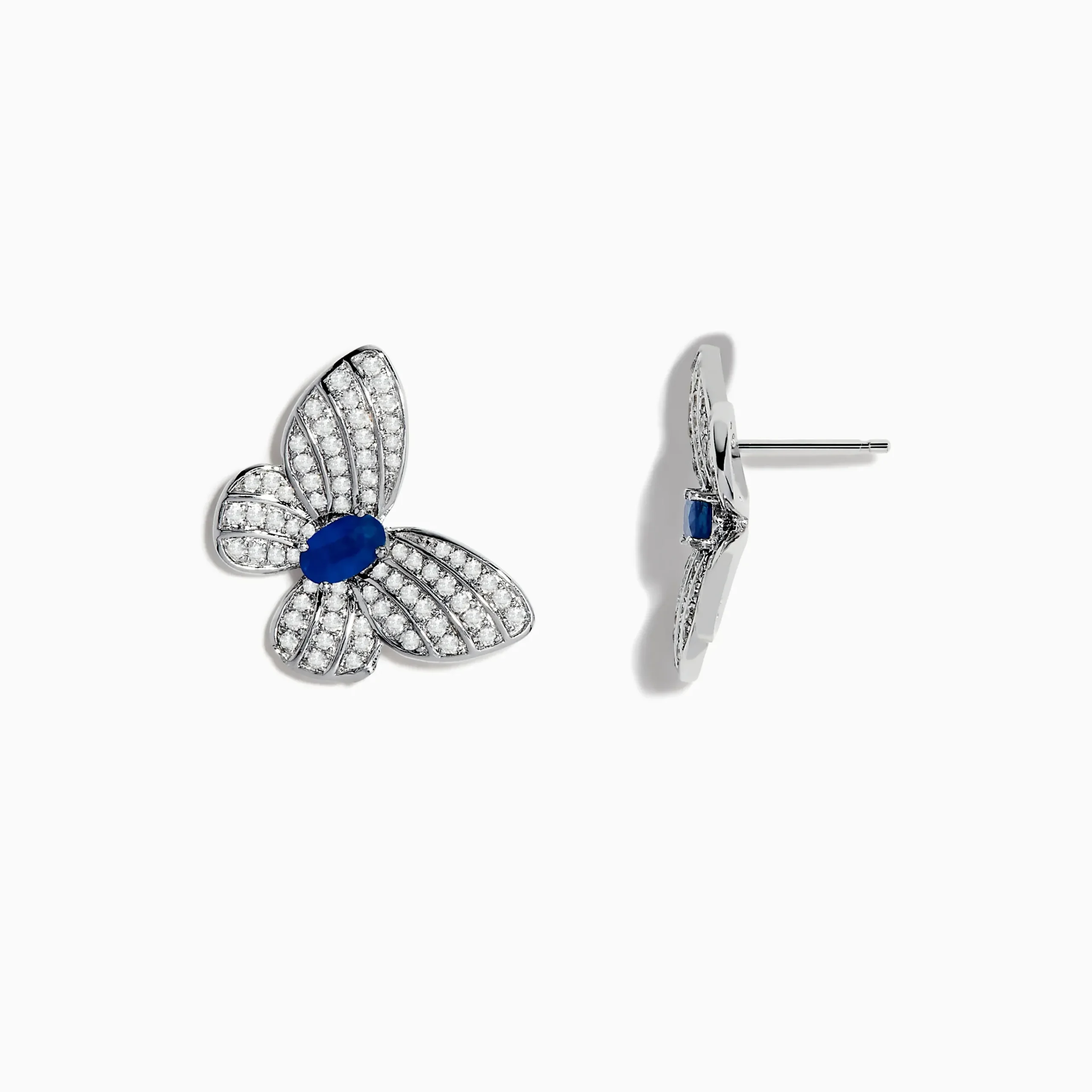 Effy Nature 14K White Gold Sapphire and Diamond Butterfly Earrings