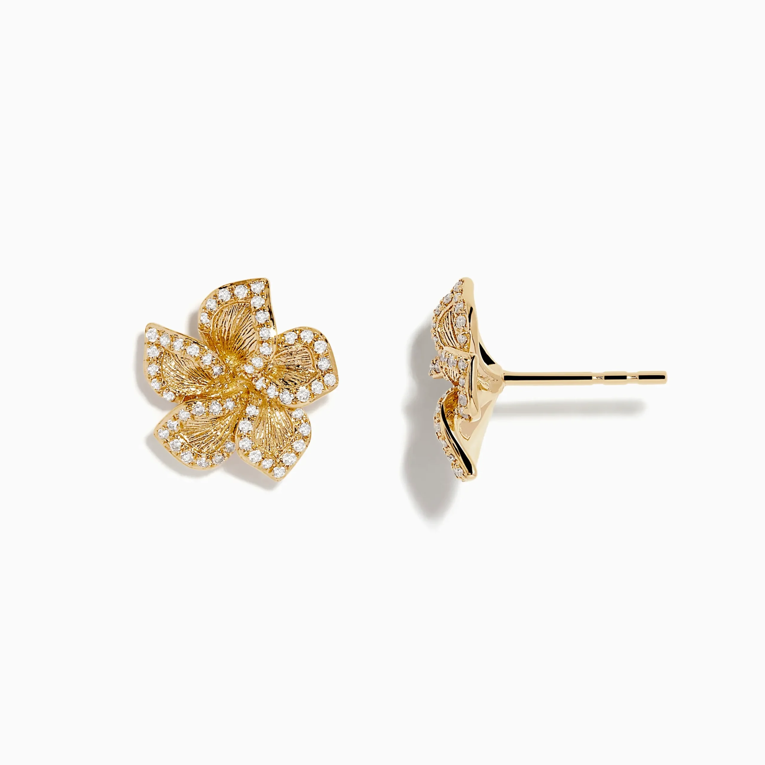 Effy Nature 14K Yellow Gold Diamond Flower Earrings