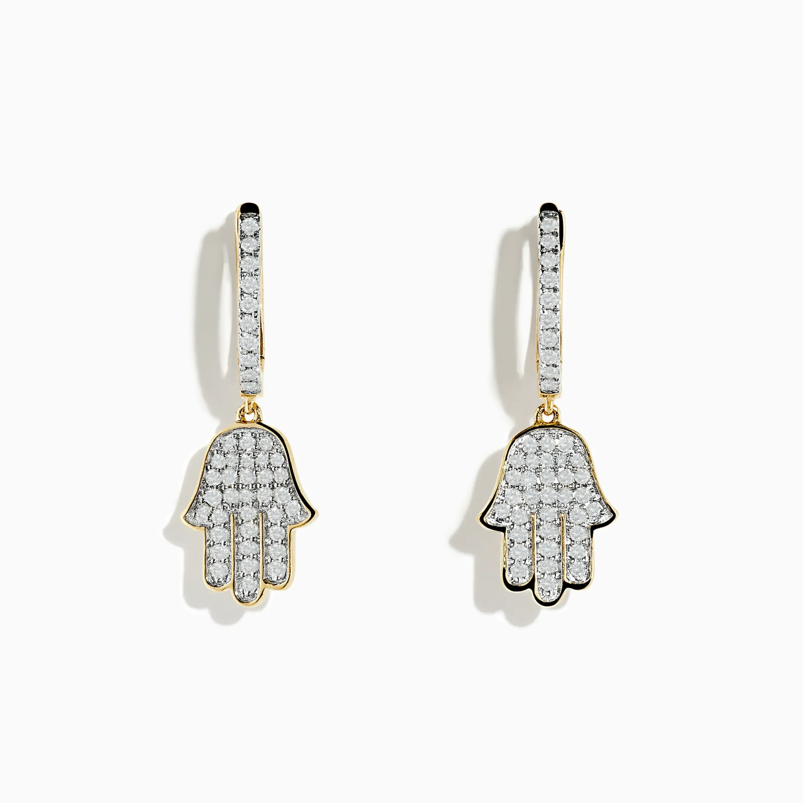 Novelty 14K Yellow Gold Diamond Hamsa Earrings