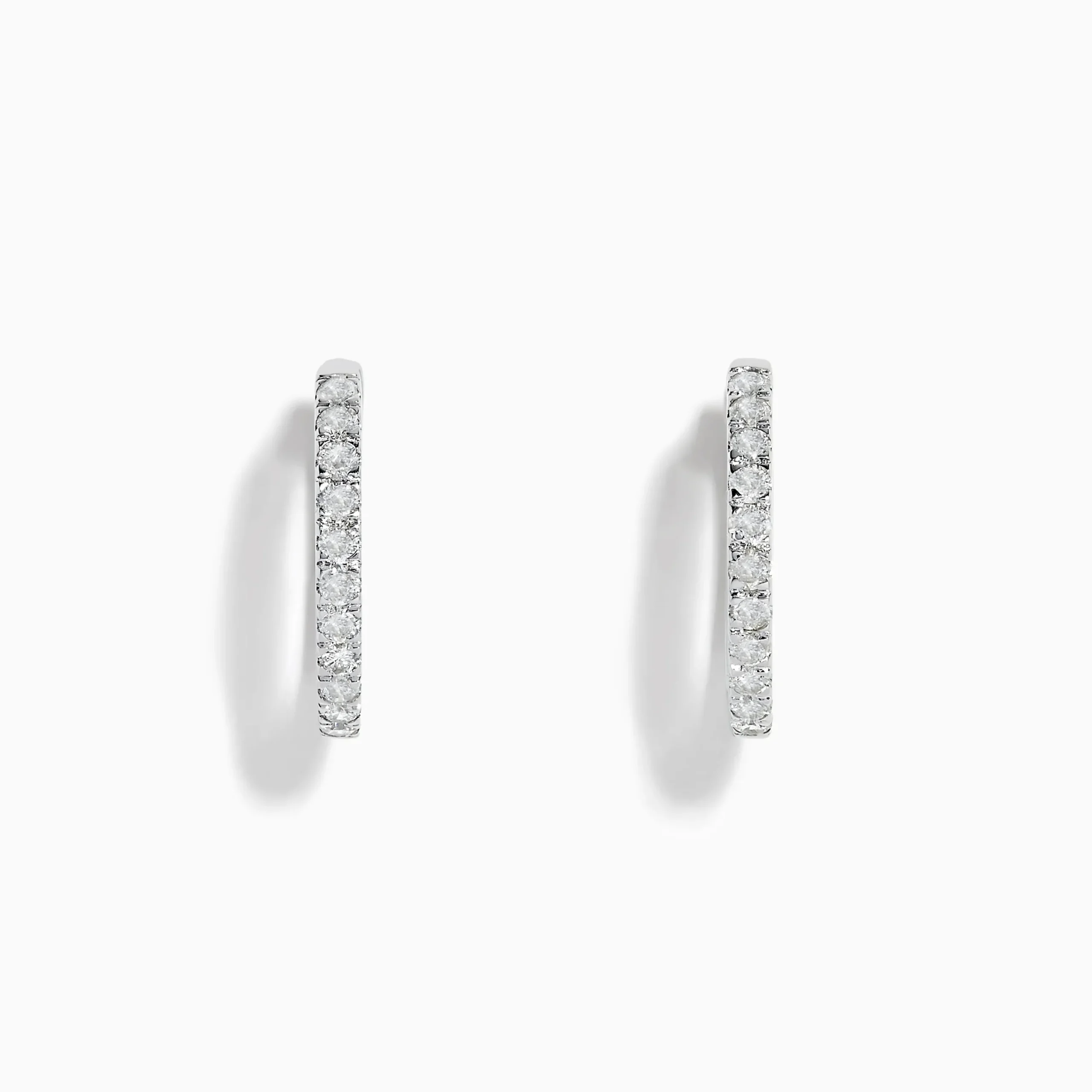 Effy Pave Classica 14k White Gold 5/8″ Diamond Hoop Earrings 0.49 TCW