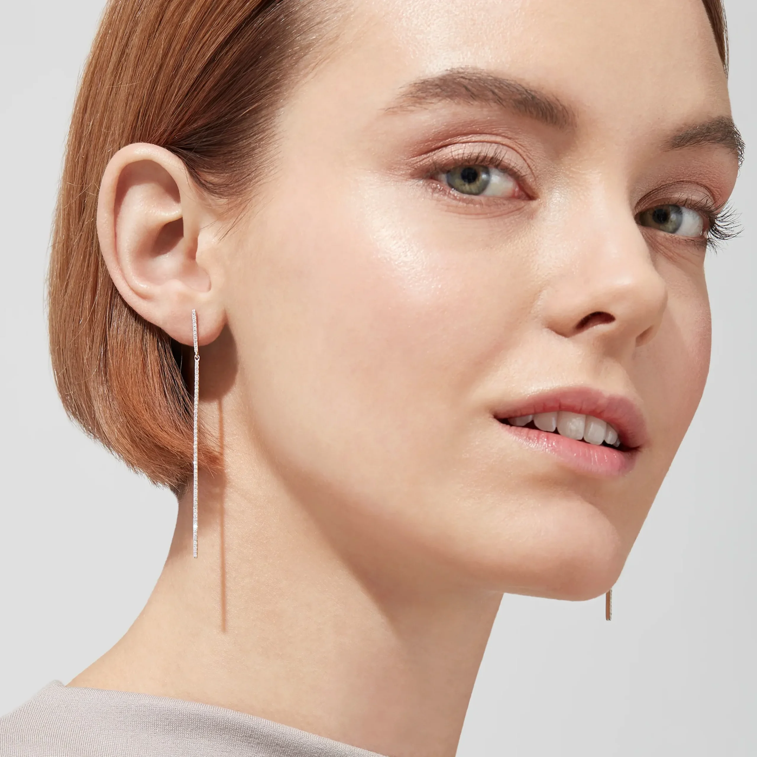 Effy Pave Classica 14K White Gold Diamond Vertical Earrings, 0.35 TCW