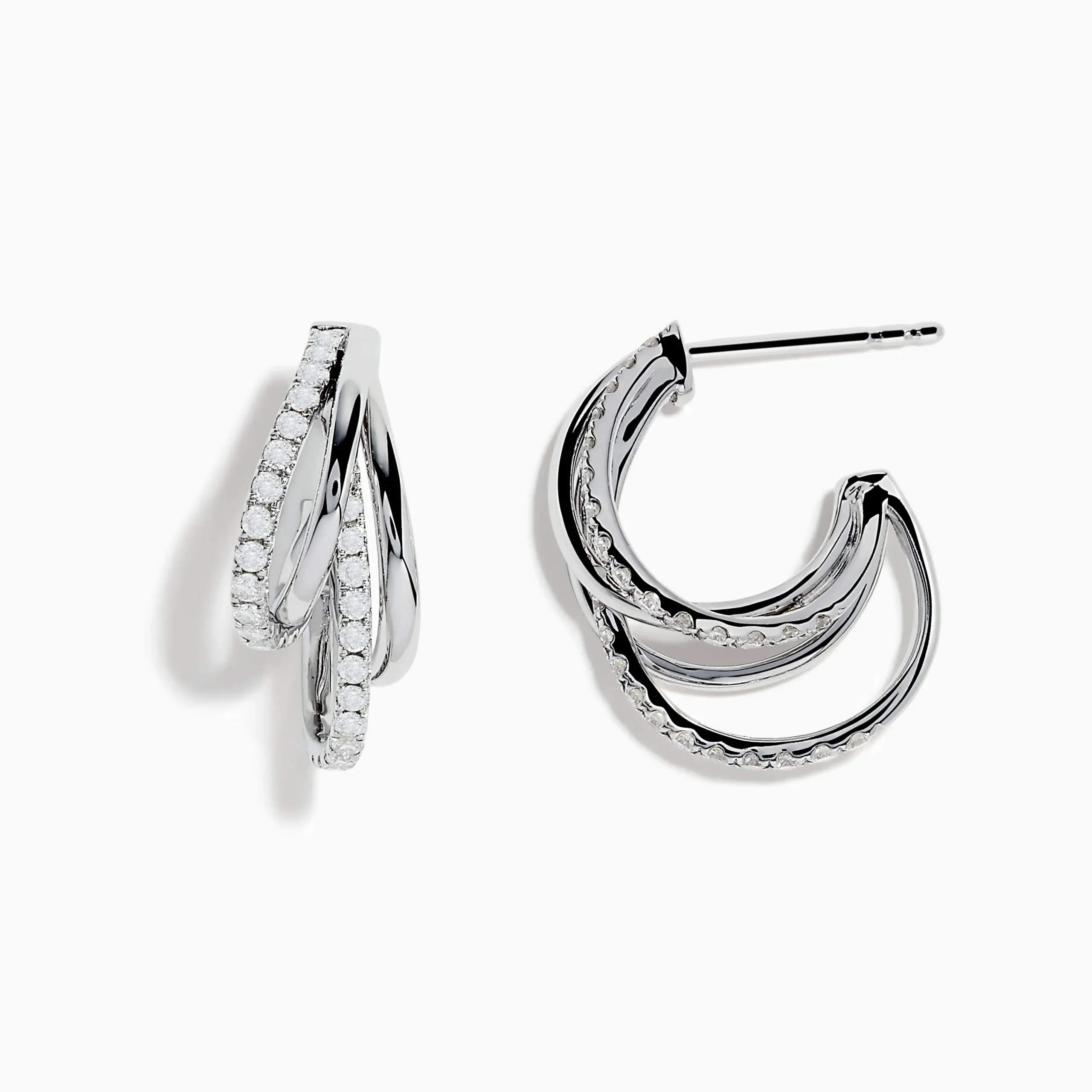 Metal:14K Gold Metal Color:WhiteStone: Round Diamond 0.55Effy Pave Classica 14K White Gold Half Hoop Diamond Earrings