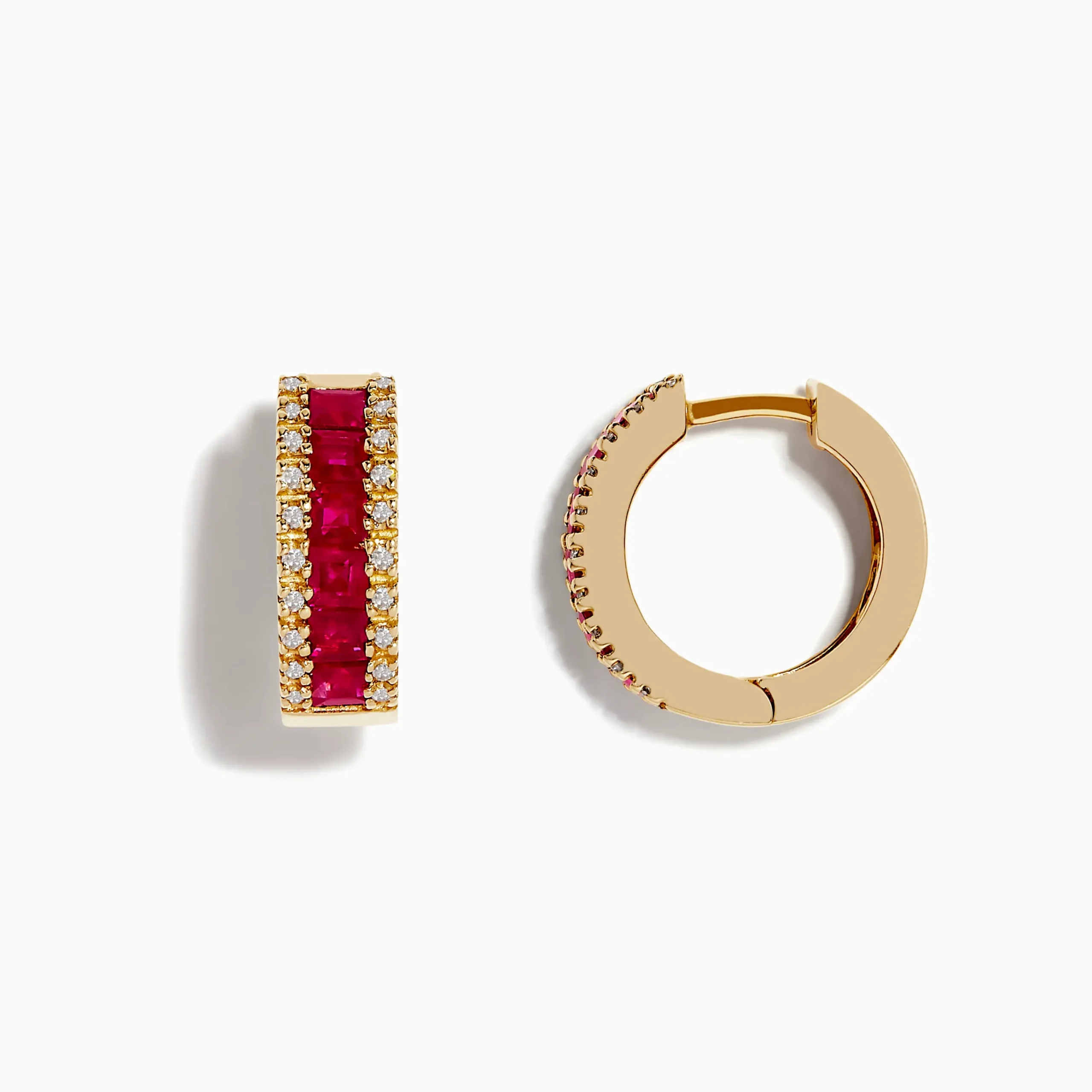 Effy Ruby Royal 14K Yellow Gold Princess Cut Ruby 5/8″ Hoop Earrings, 1.76 TCW