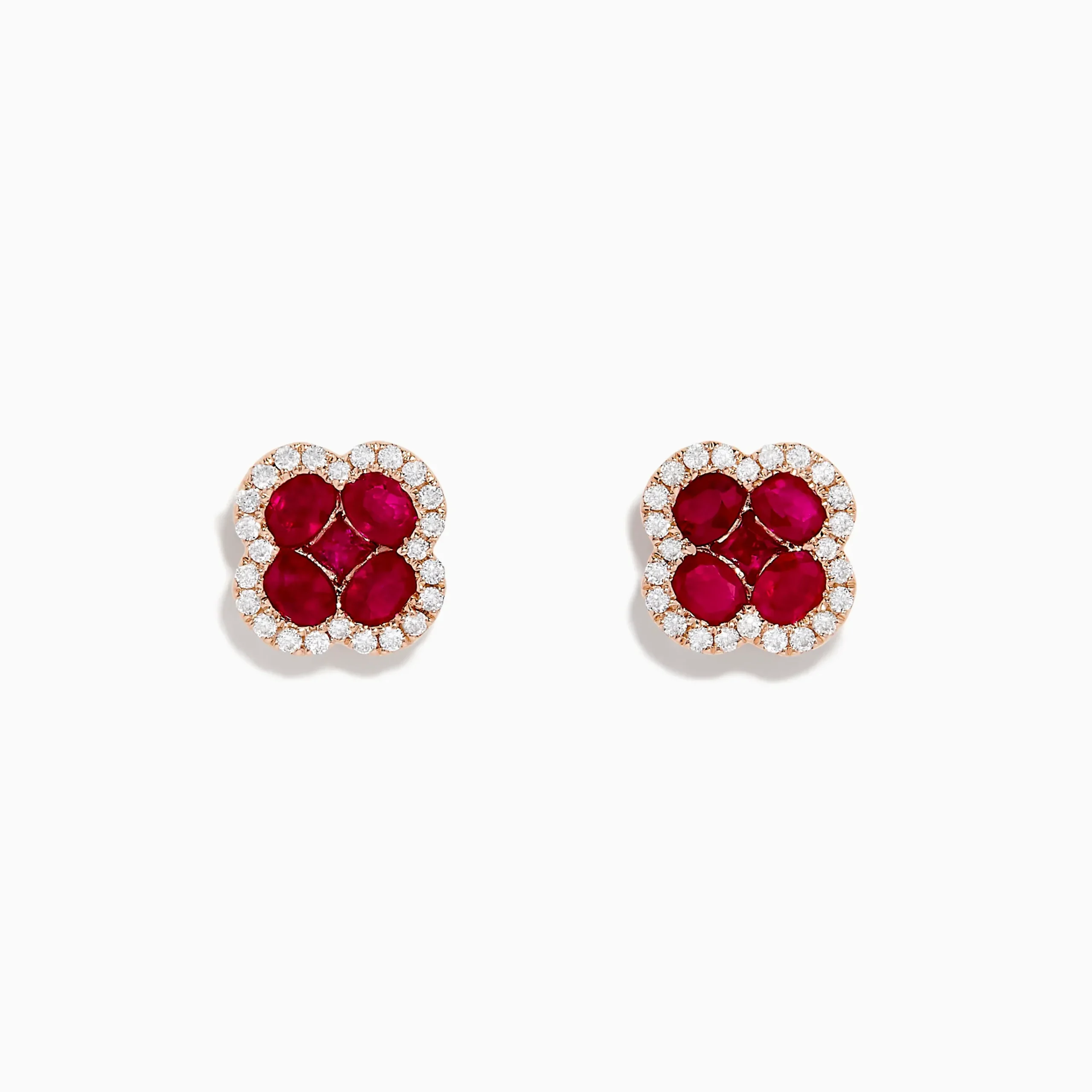 Effy Ruby Royale 14K Rose Gold Ruby and Diamond Flower Stud Earrings