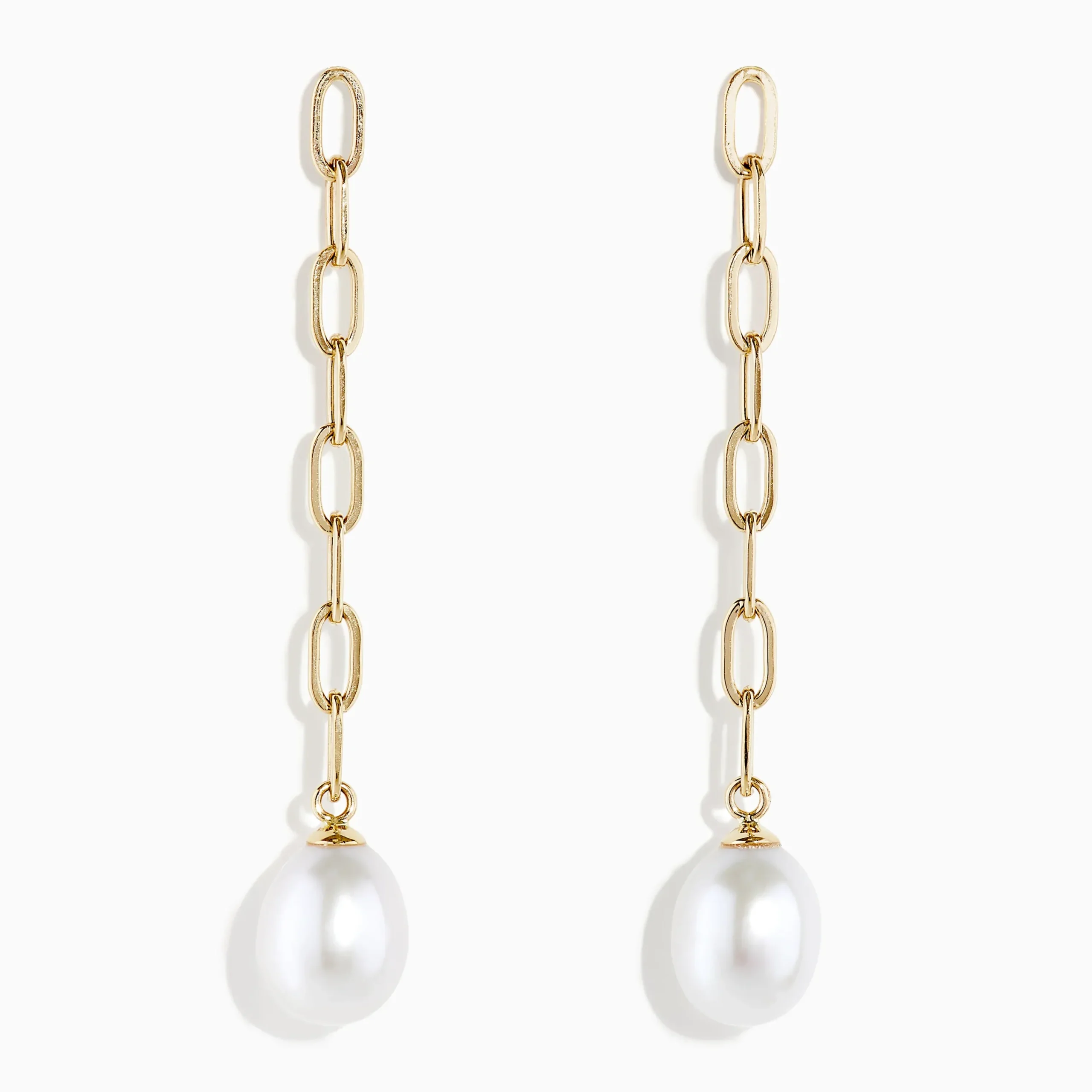 14K Yellow Gold Freshwater Pearl Paperclip Chain Drop Earrings
