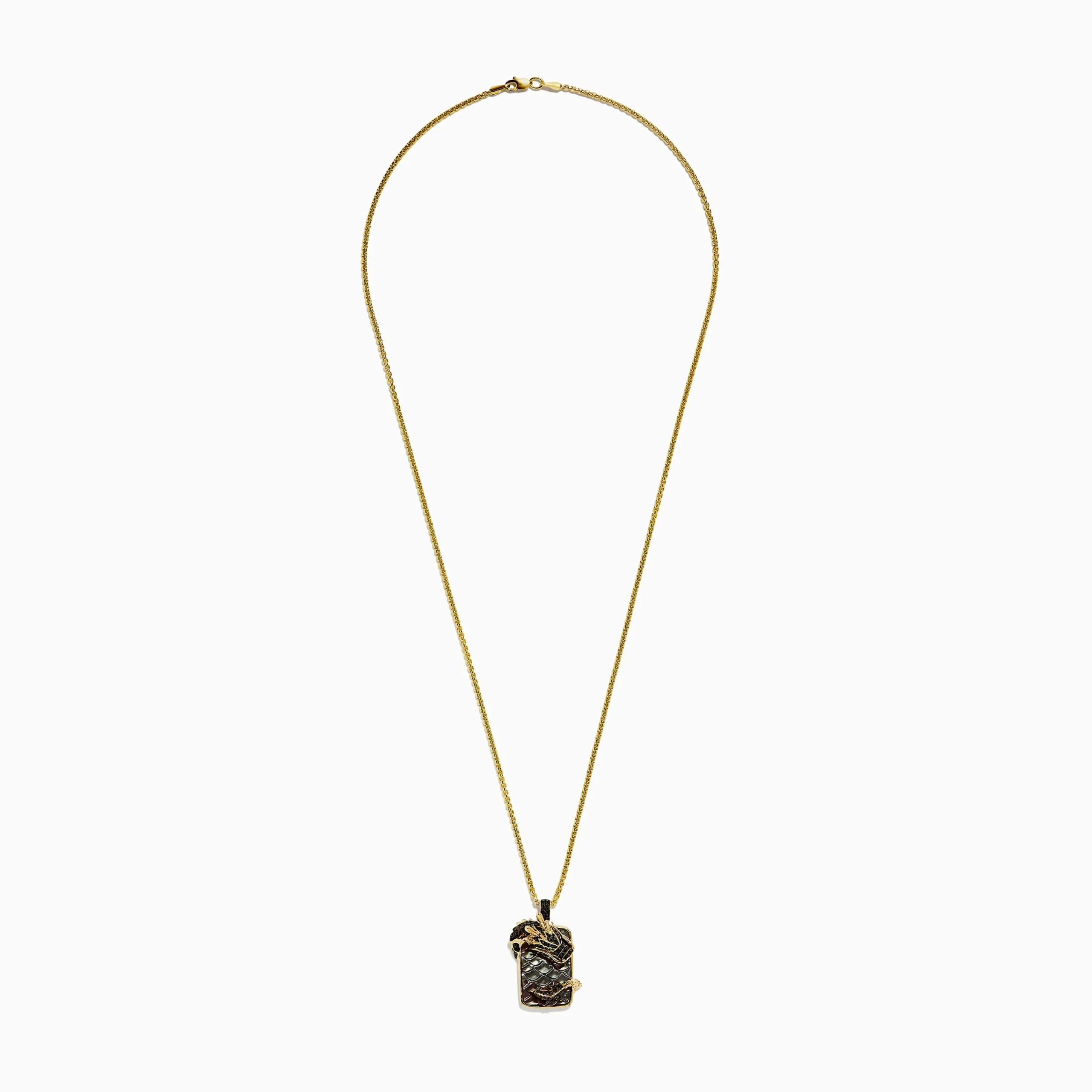 Effy Men’s 14K Yellow Gold Tsavorite, Black Shell, and Black Diamond Dragon Pendant