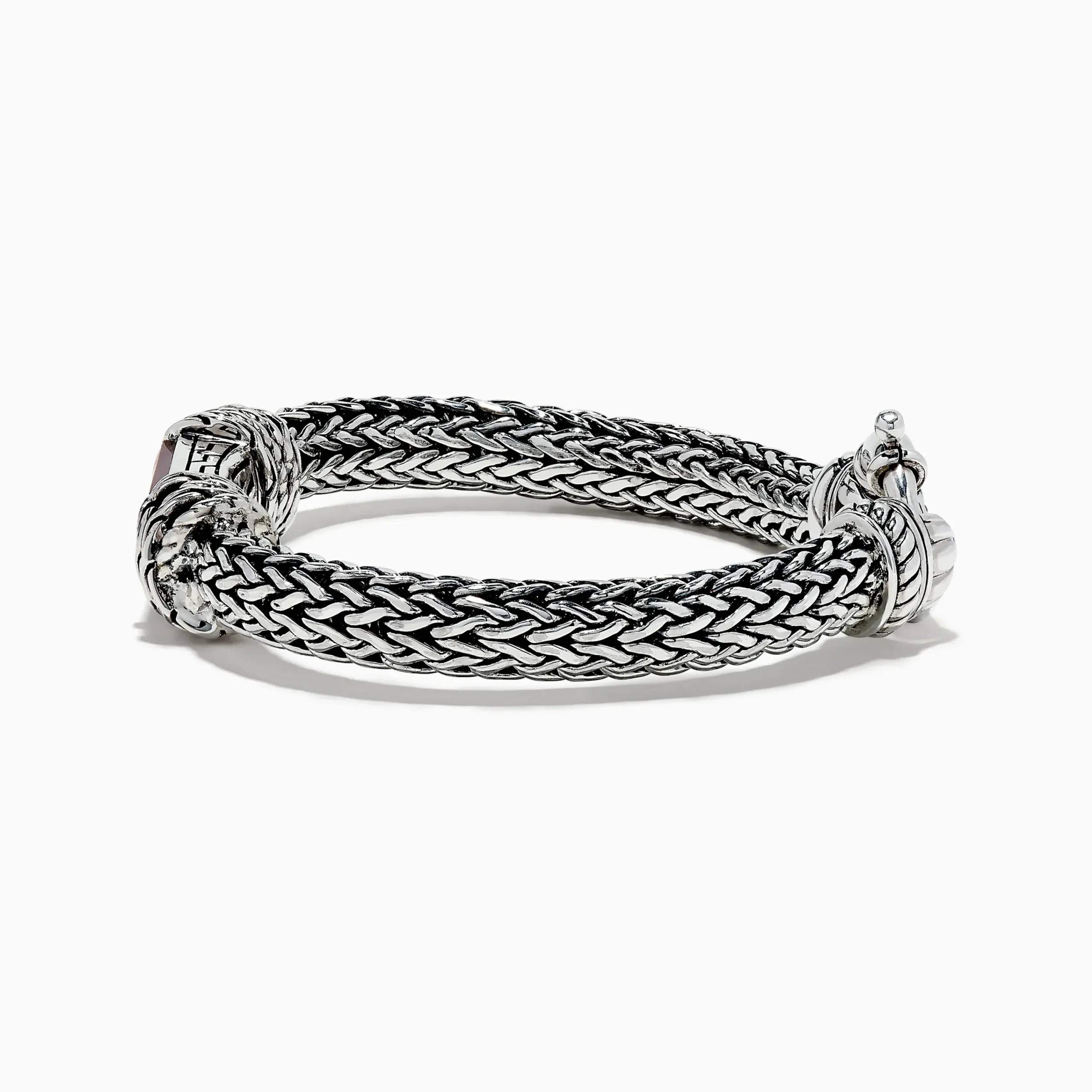 Effy Men’s 925 Sterling Silver Braided Chain Tiger Eye Bracelet 5.0 TCW
