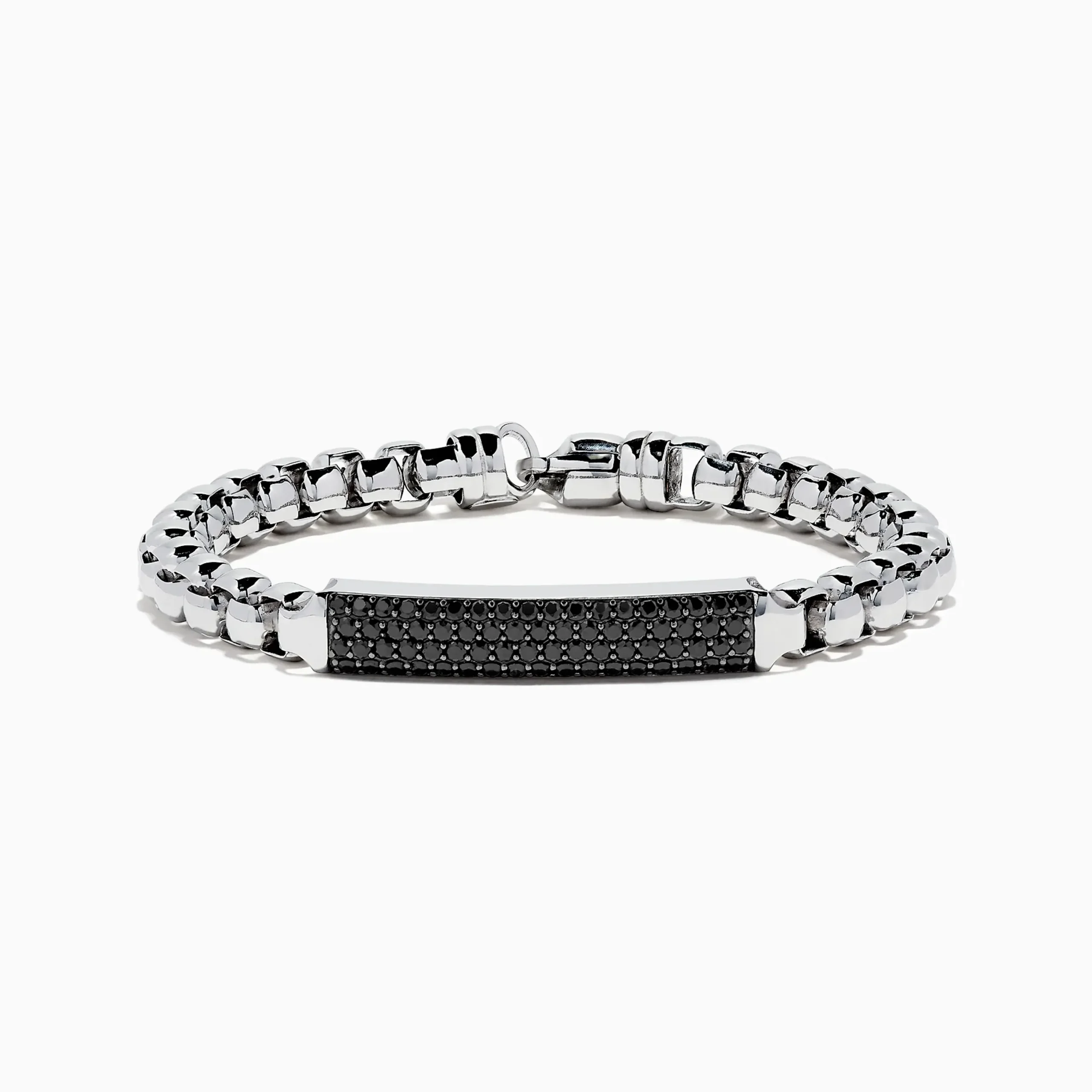 Effy Men’s 925 Sterling Silver Chain Link Black Spinel Bracelet, 3.15 TCW