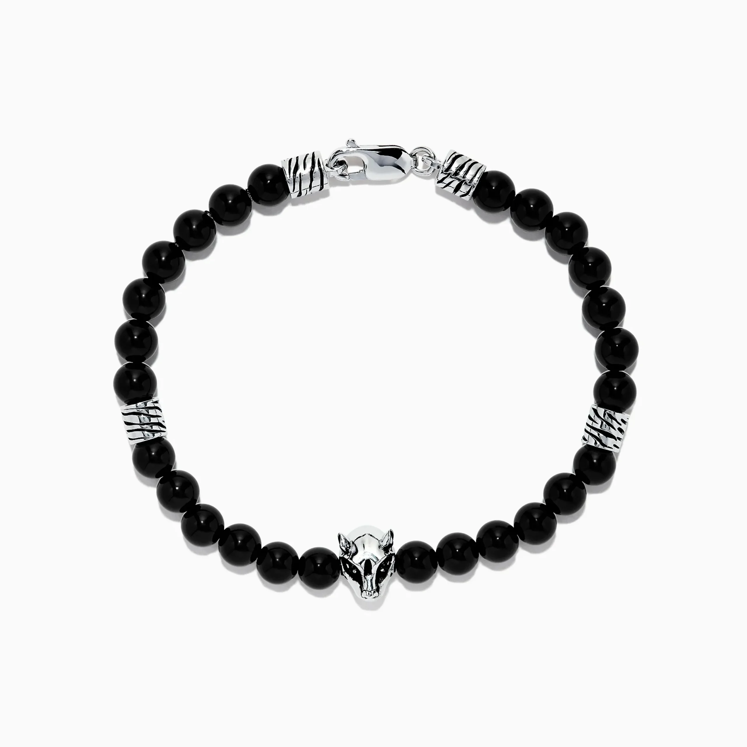 Effy Men’s Sterling Silver Beaded Onyx Bracelet, 41.80 TCW