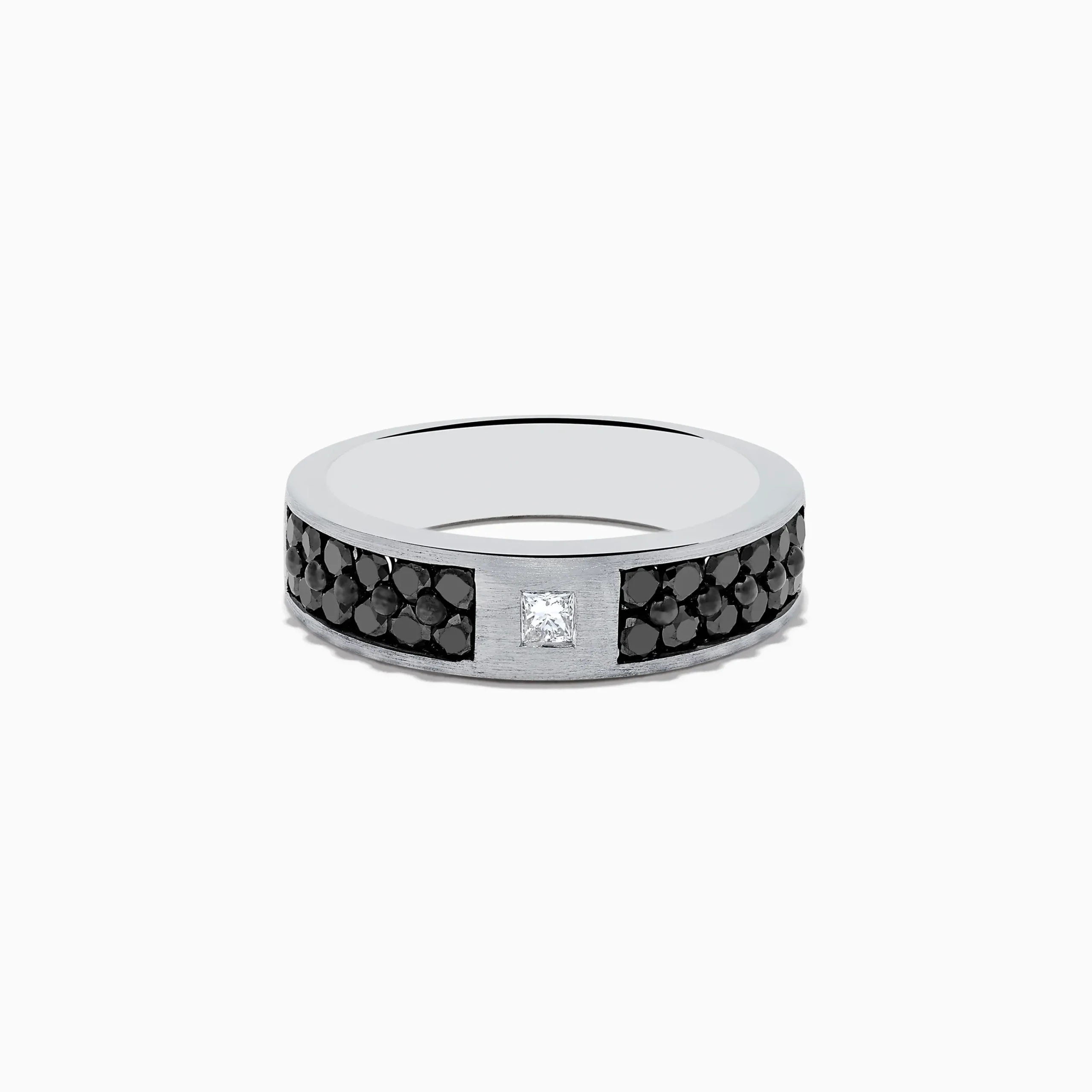 Effy 14K White Gold Men’s Black and White Diamond Ring, 1.15 TCW