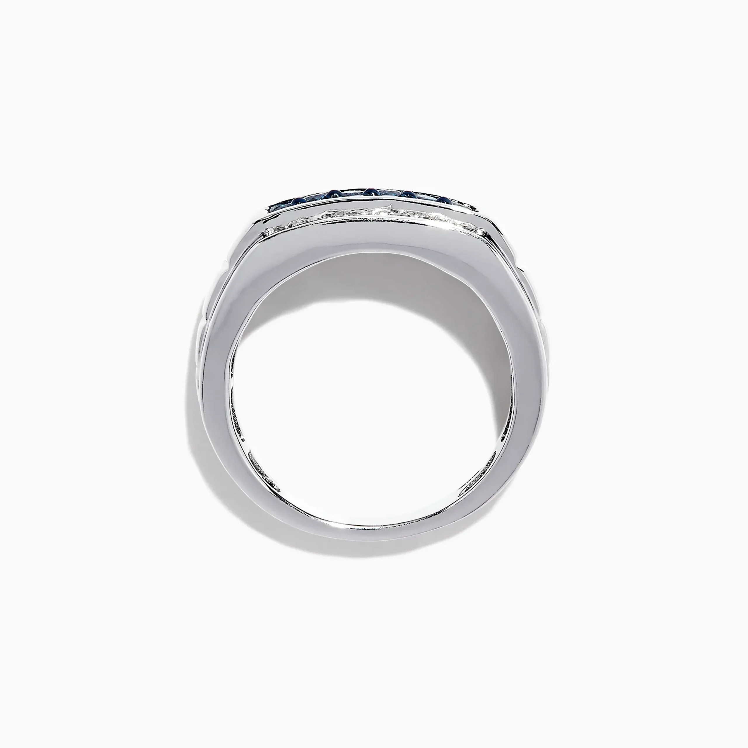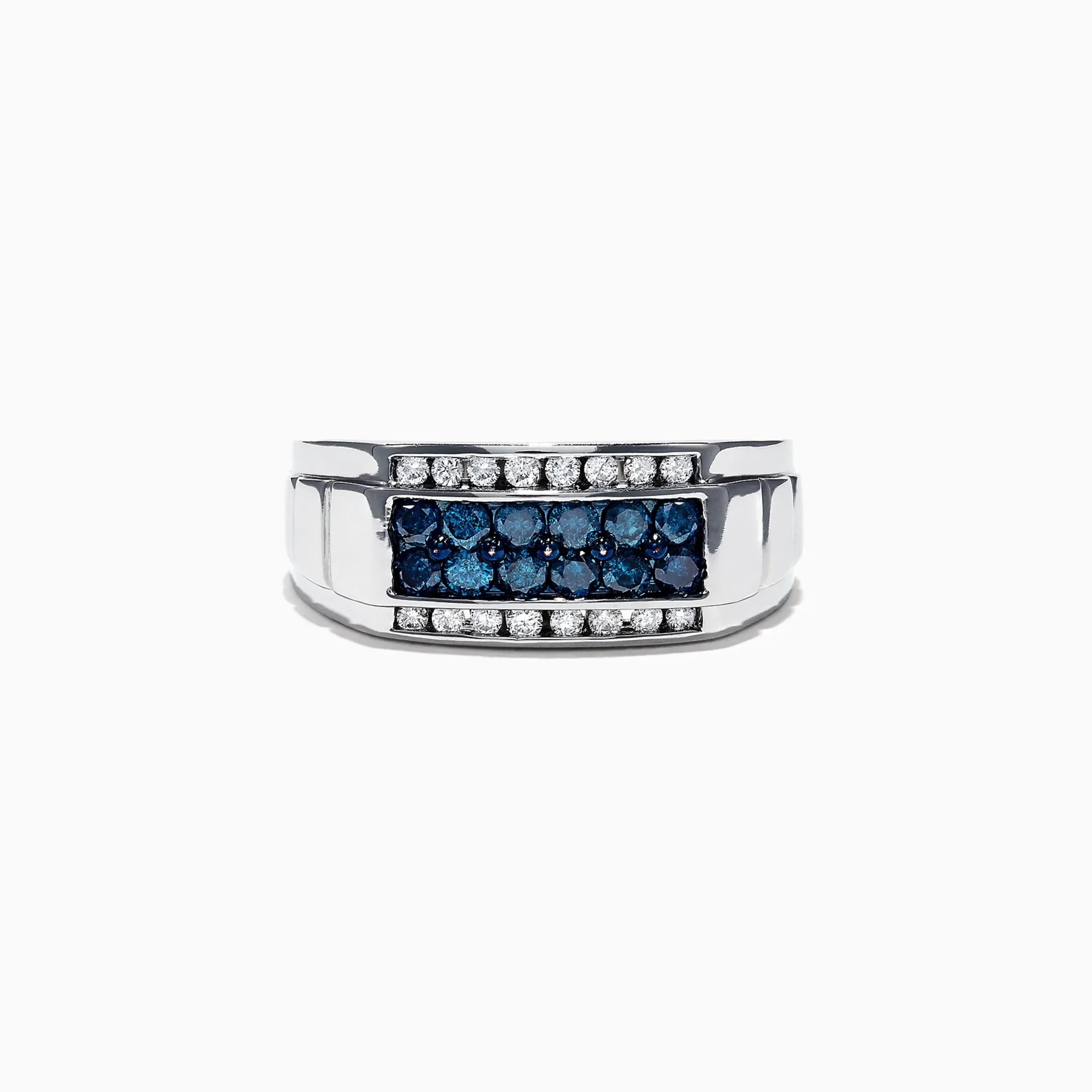 Effy Men’s 14K White Gold Blue and White Diamond Ring, 1.0 TCW