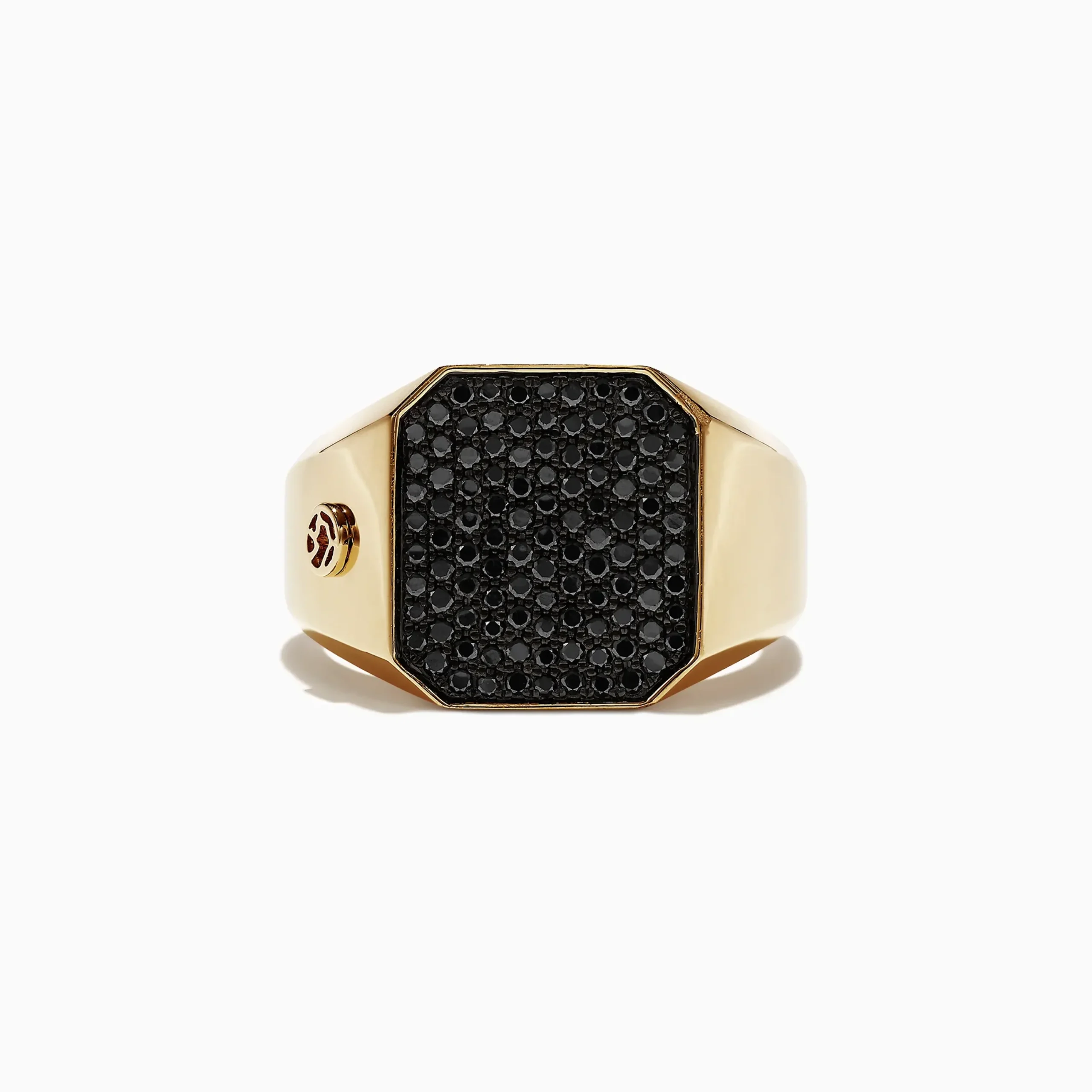 Effy Men’s 14K Yellow Gold Black Diamond Signet Ring, 0.78 TCW