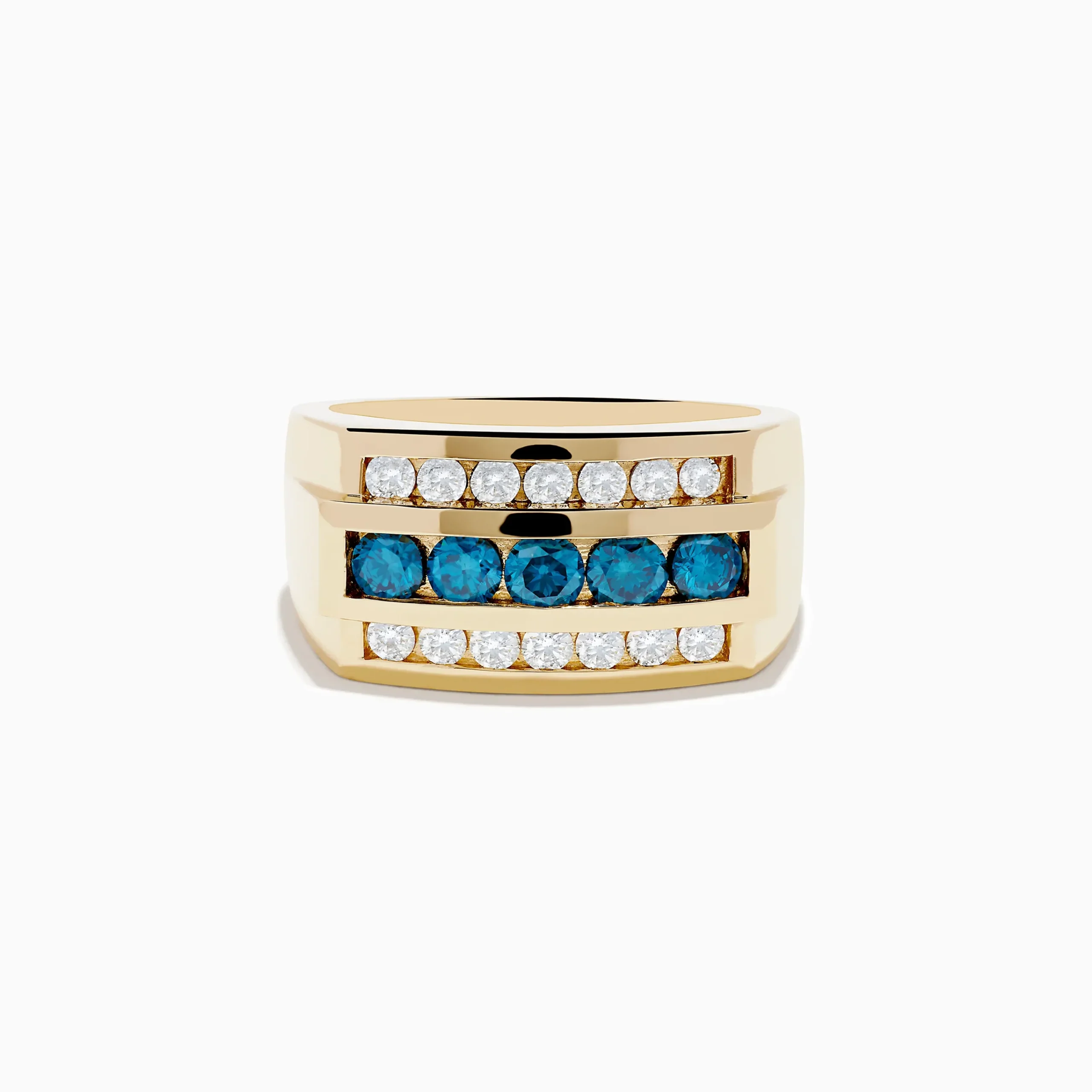 Men’s 14K Yellow Gold Blue and White Diamond Ring
