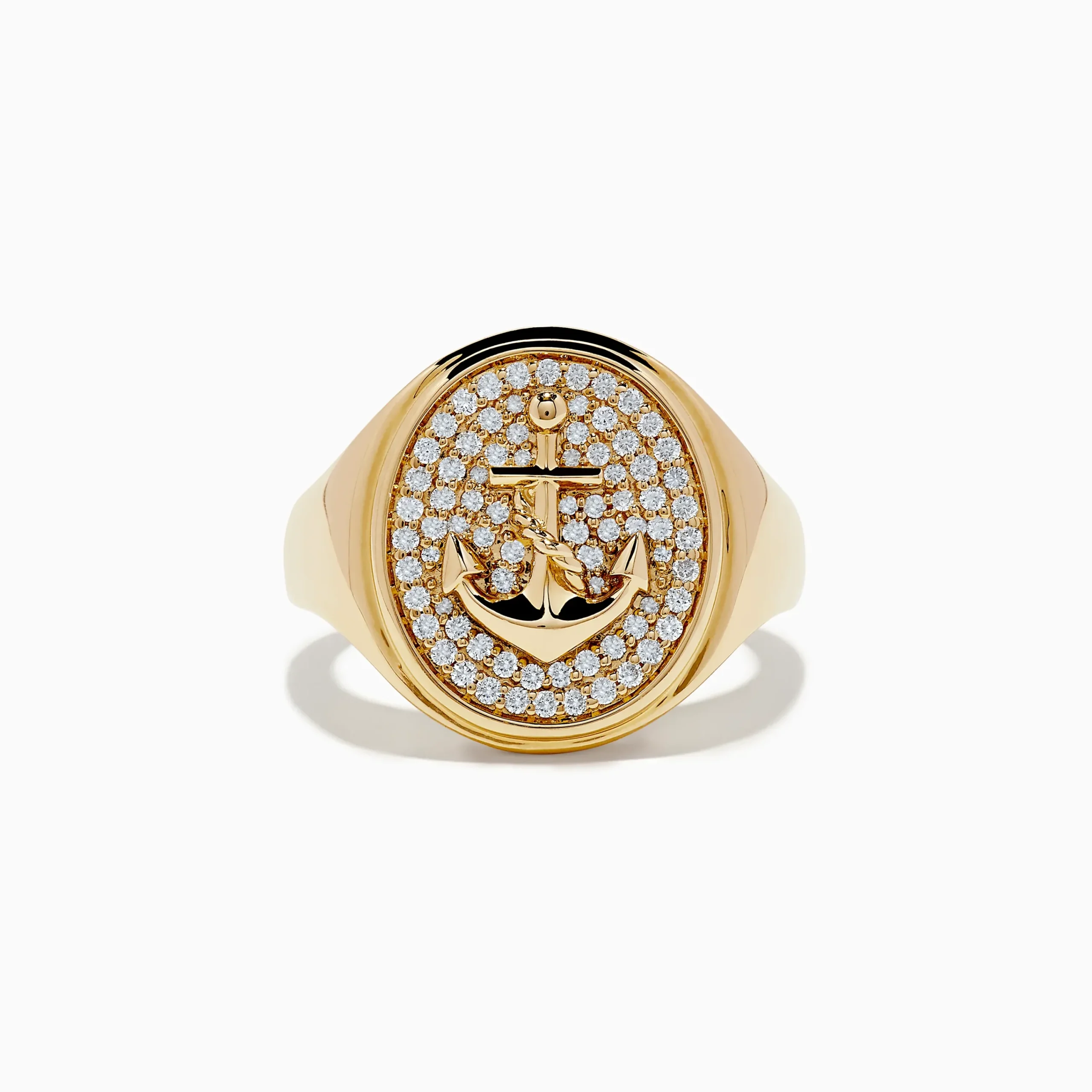 Effy Men’s 14K Yellow Gold Diamond Anchor Ring