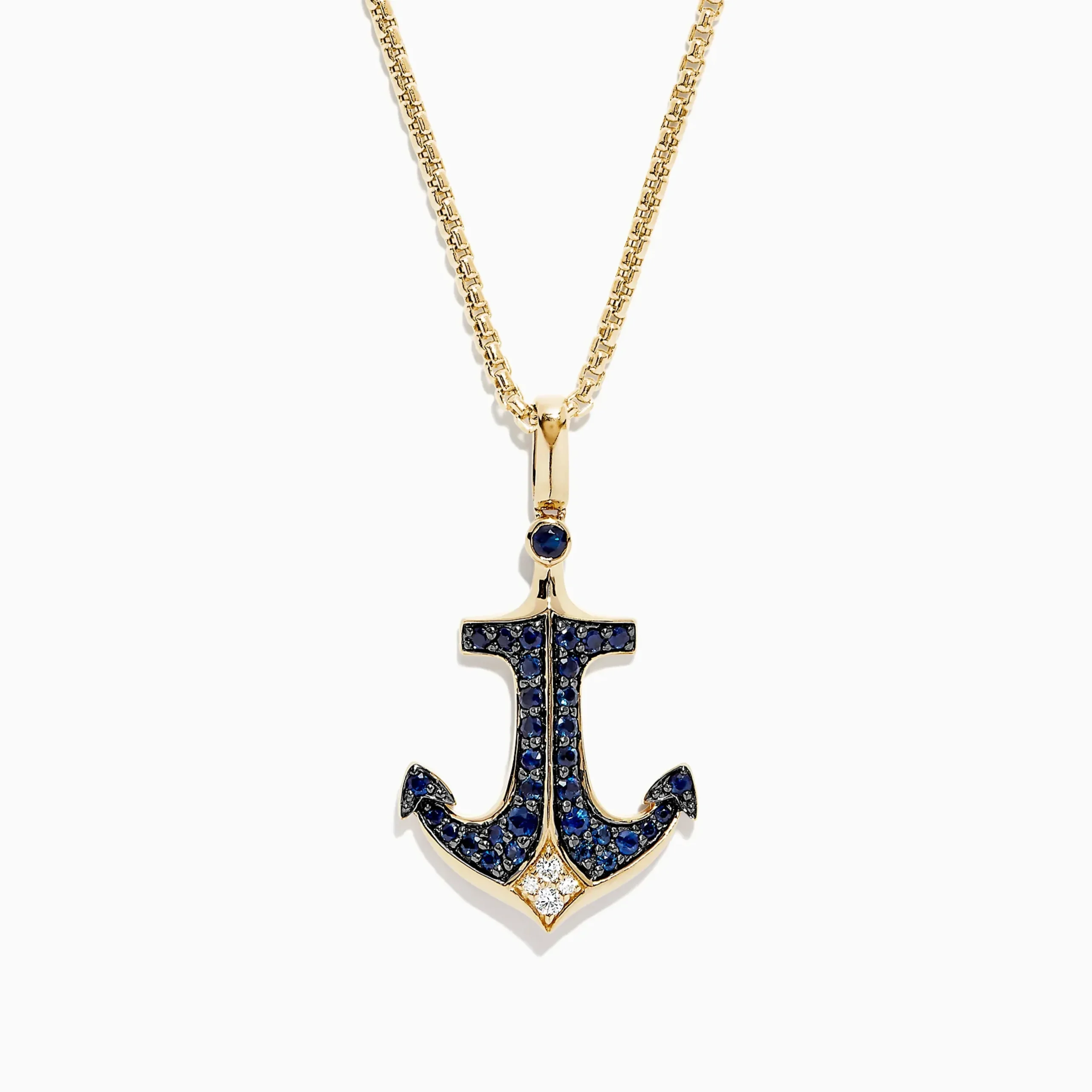 Effy Men’s 14K Yellow Gold Sapphire and Diamond Anchor Pendant, 0.96 TCW