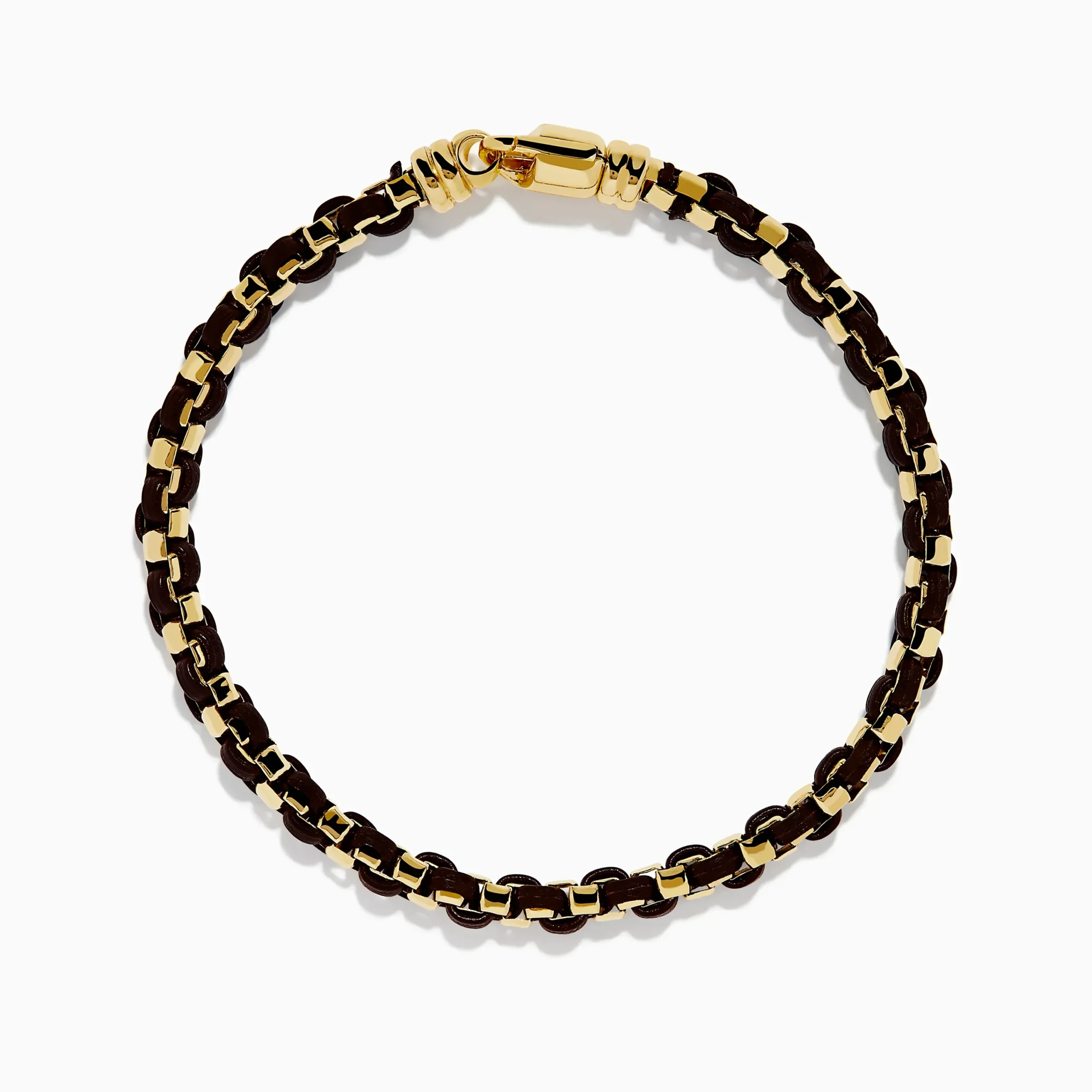 Men’s 925 Gold Plated Silver Leather Woven Bracelet