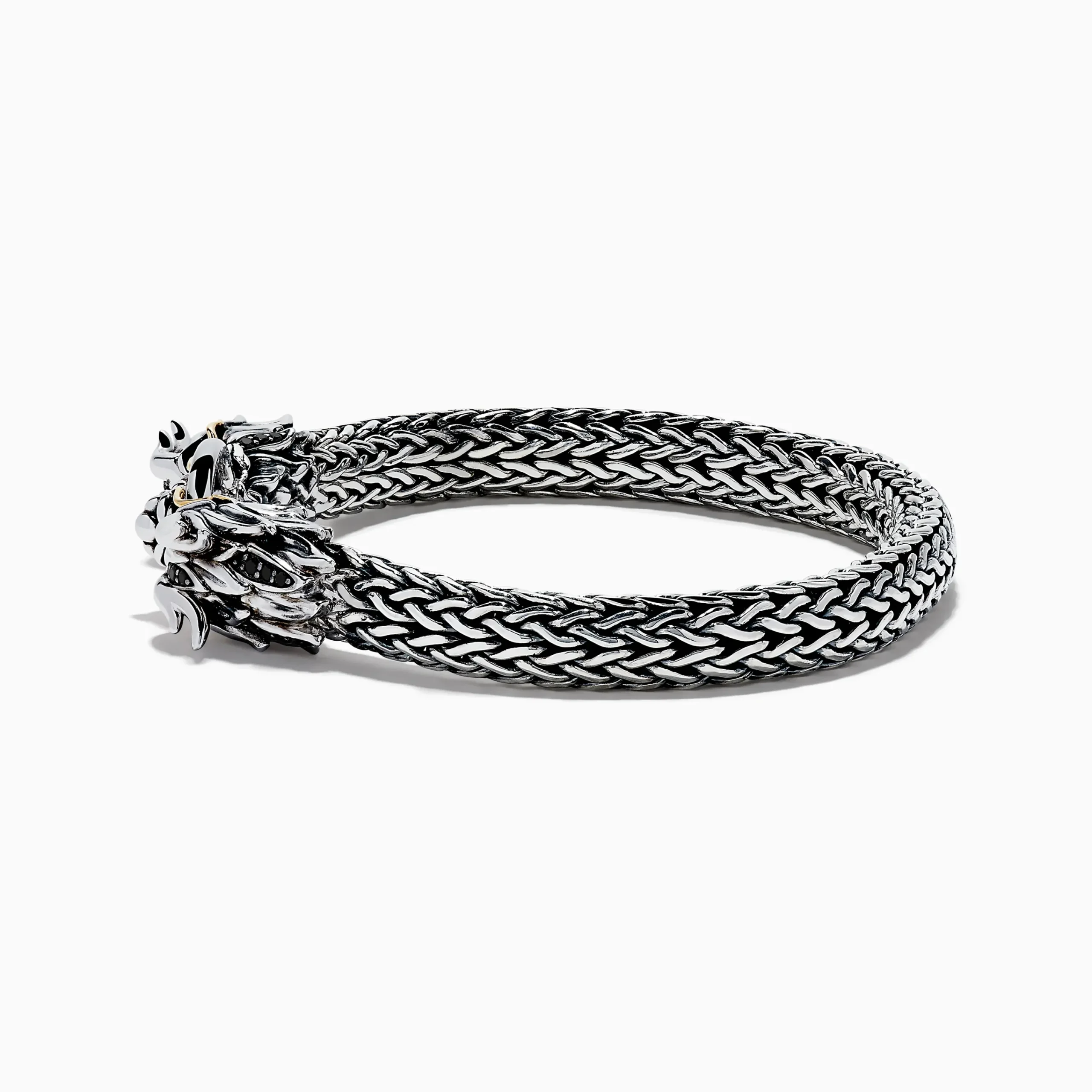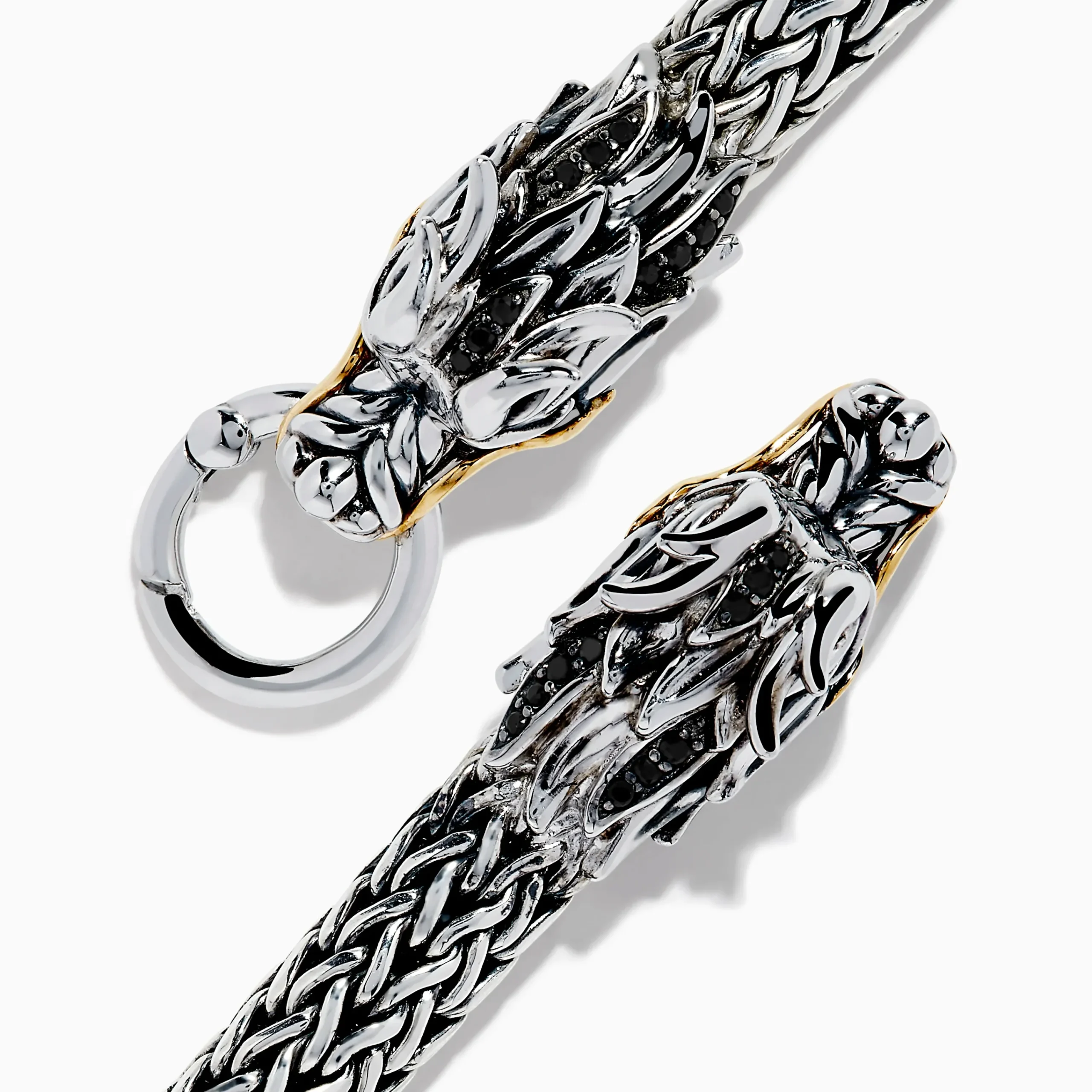 Men’s 925 Silver & 14K Yellow Gold Black Sapphire and Tsavorite Dragon Bracelet