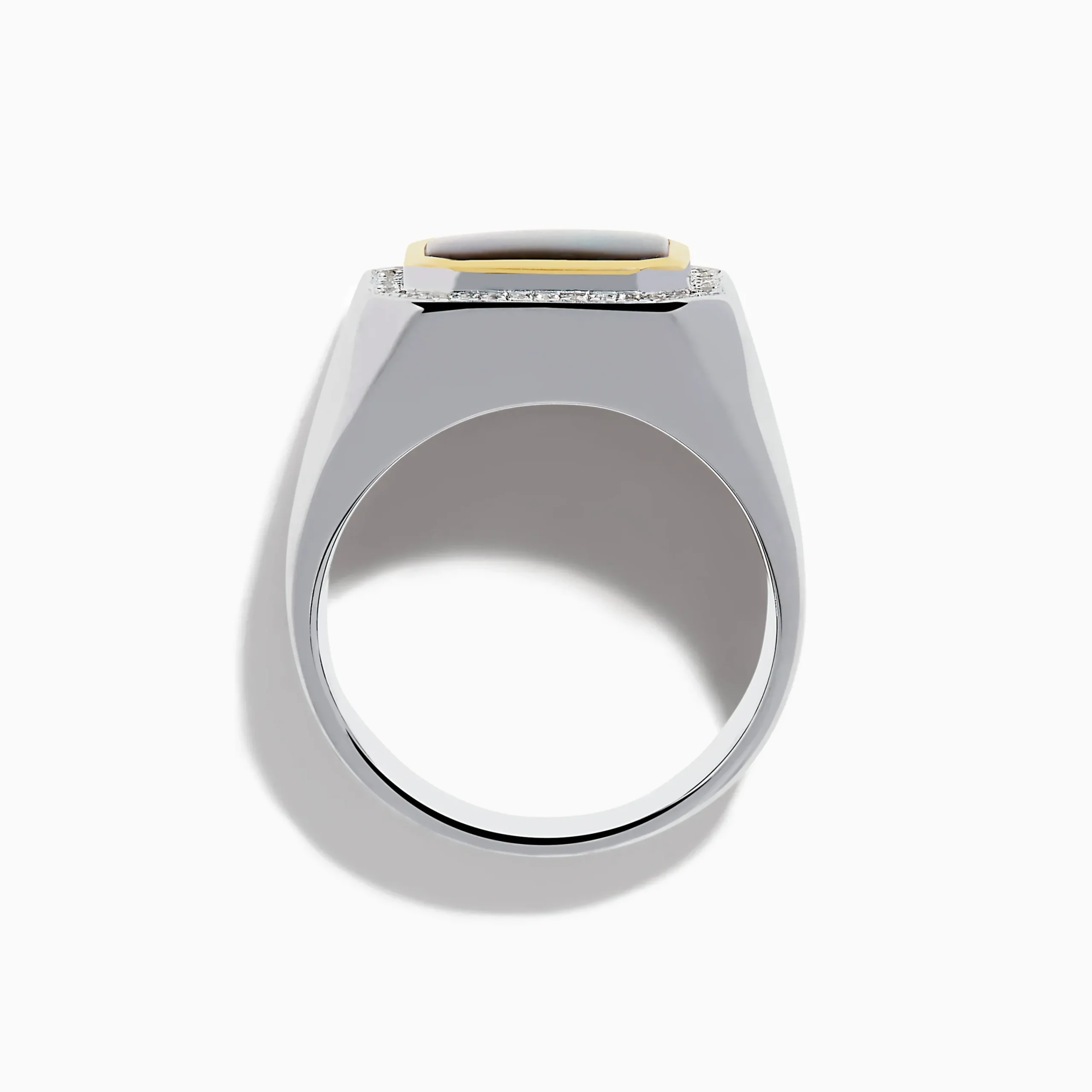 Men’s 925 Sterling Silver Ammolite and Diamond Ring