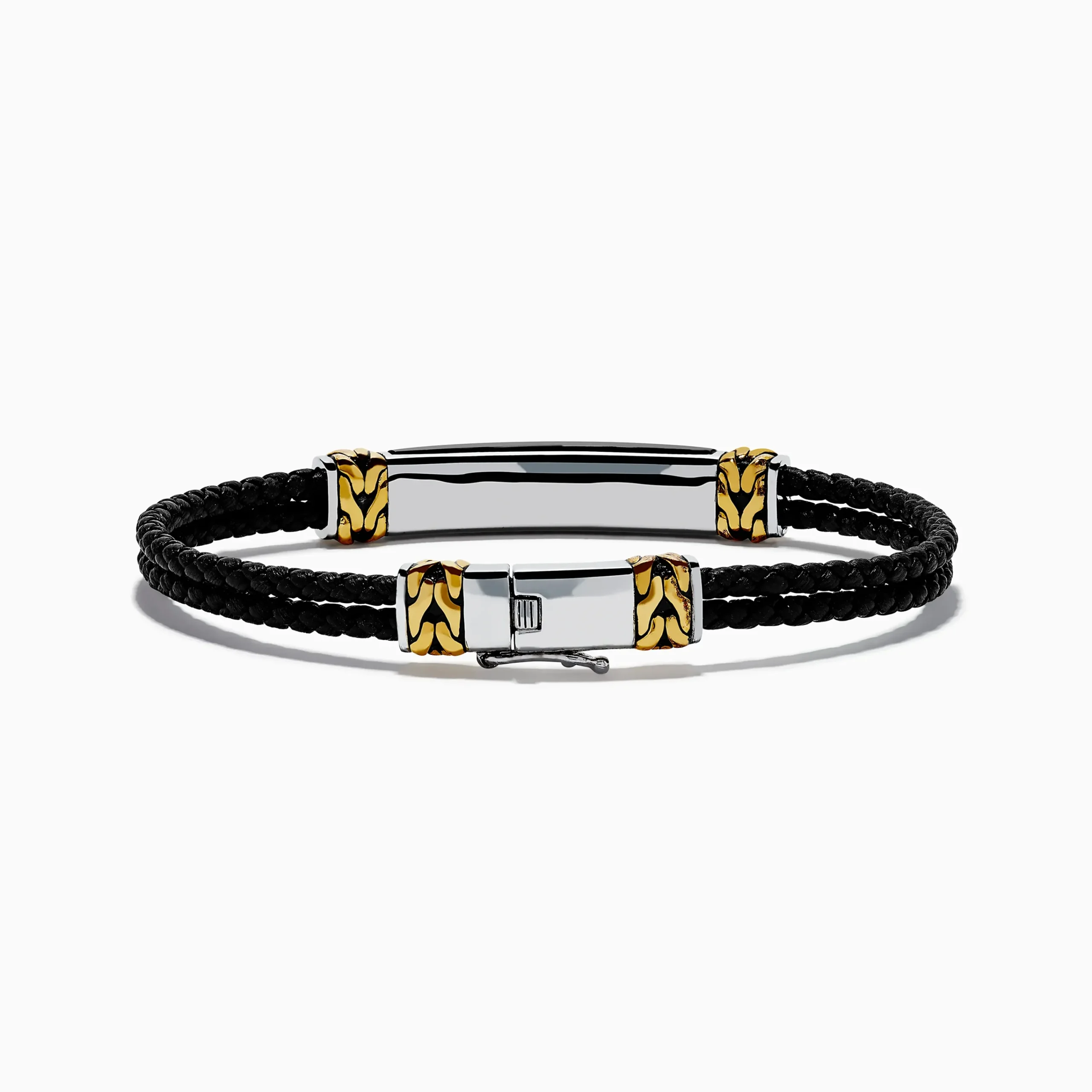 Men’s 925 Sterling Silver and Leather Onyx Bracelet