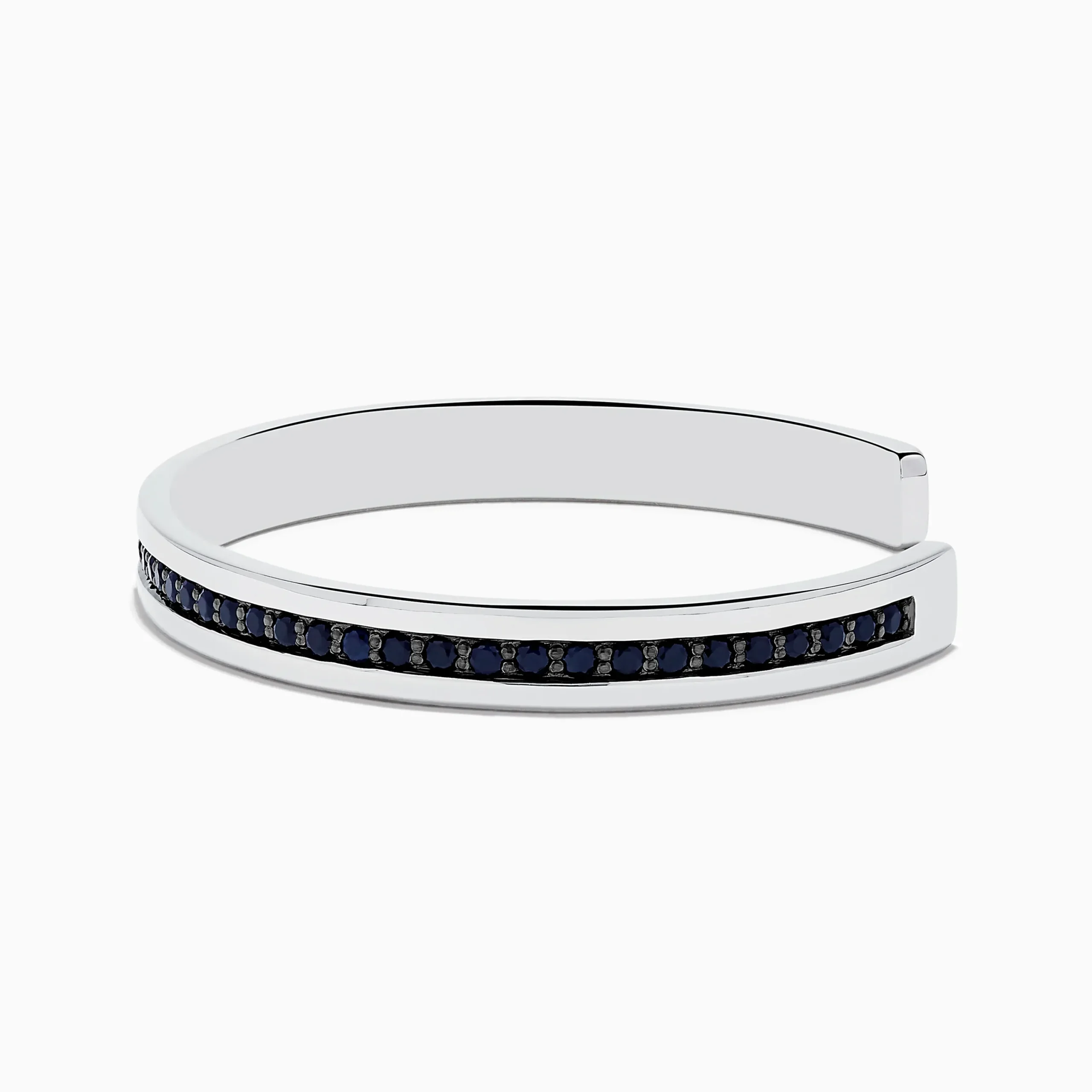 Men’s 925 Sterling Silver Black Sapphire Cuff Bangle 4.09 TCW