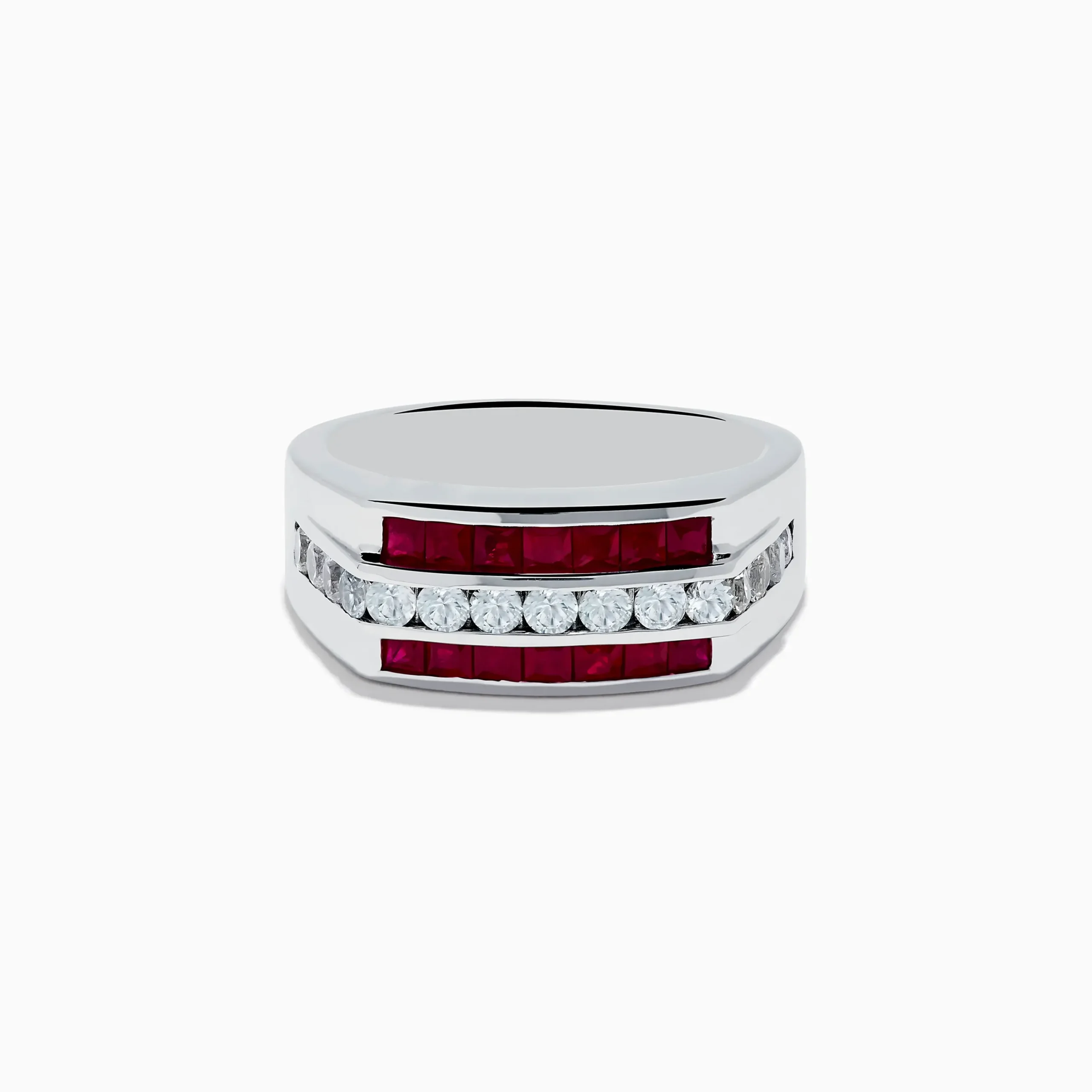 Men’s 925 Sterling Silver Ruby and White Sapphire Ring