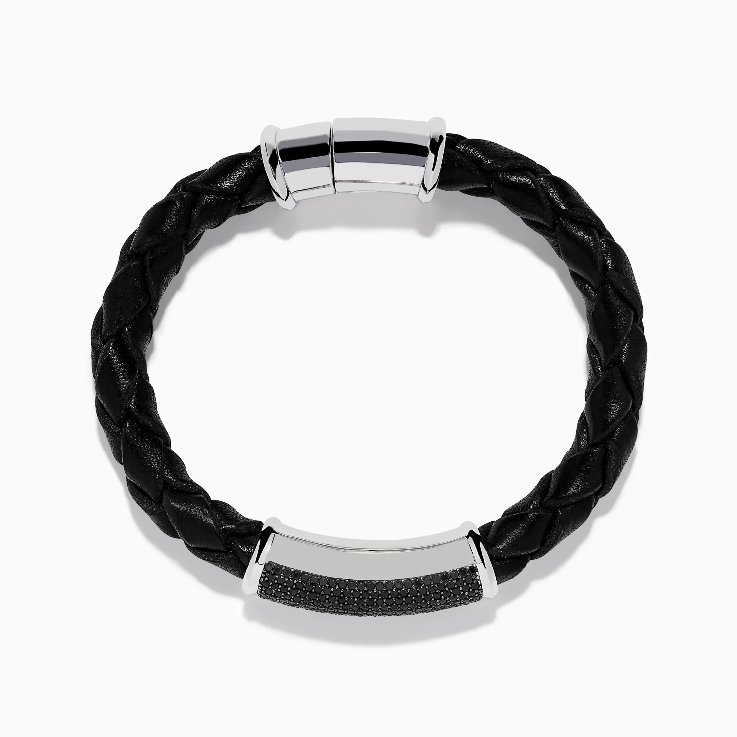 Men’s 925 Sterling Silver Spinel Leather Bracelet