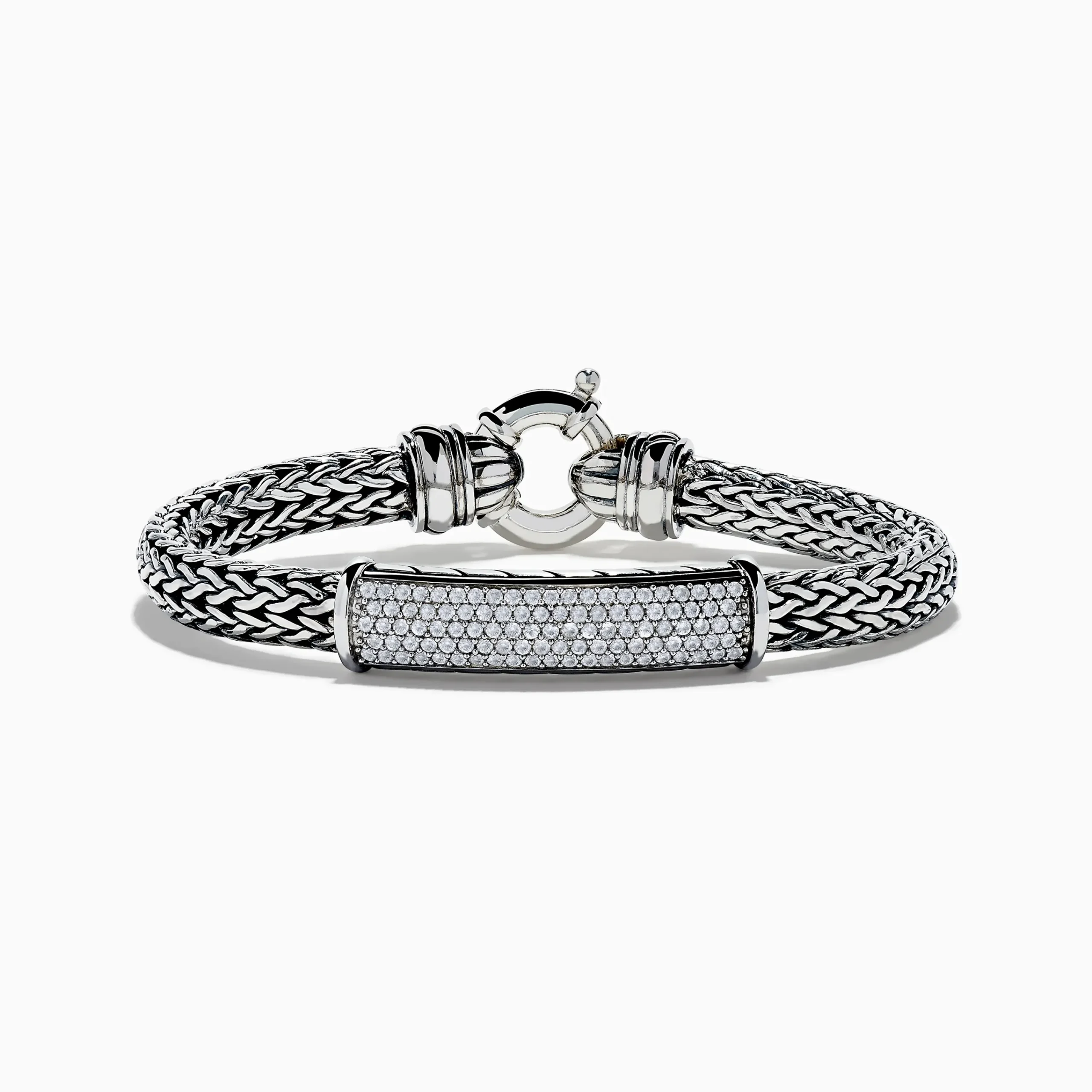 Men’s 925 Sterling Silver White Sapphire Braided Chain Bracelet