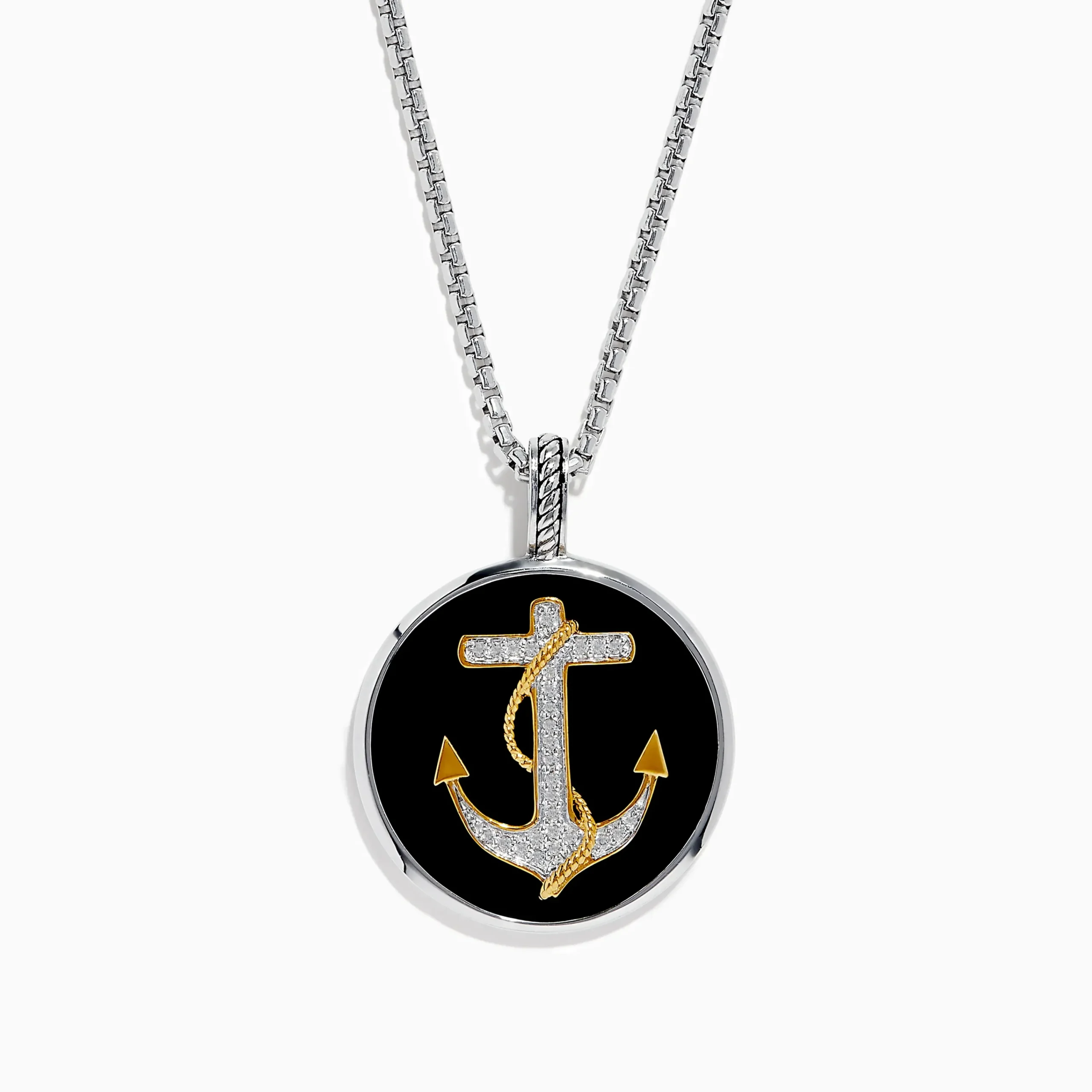 Effy Men’s 925 Sterling Silver White Topaz and Onyx Anchor Pendant