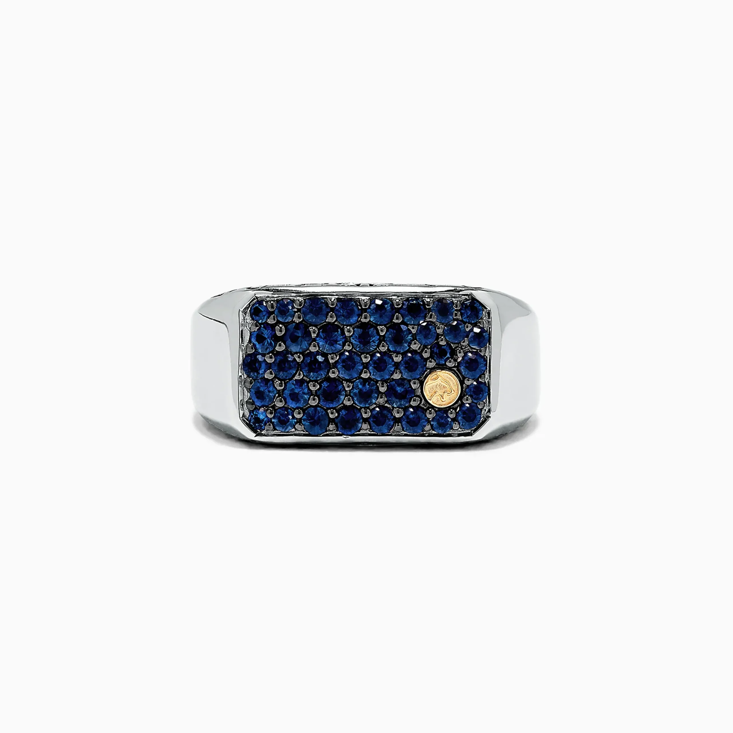 Effy Men’s Sterling Silver and Blue Sapphire Ring, 1.35 TCW