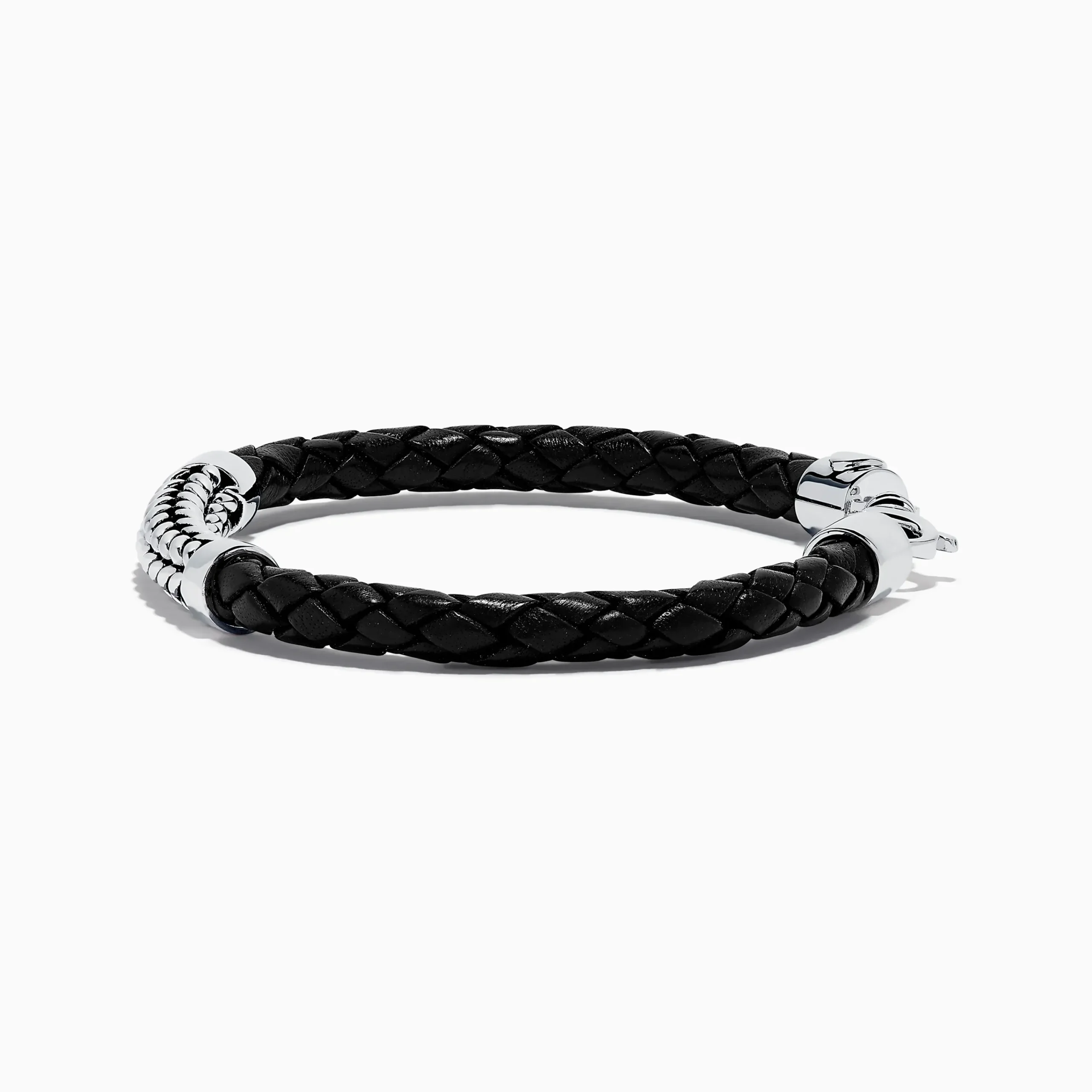 Effy Men’s Sterling Silver and Leather Braid Bracelet