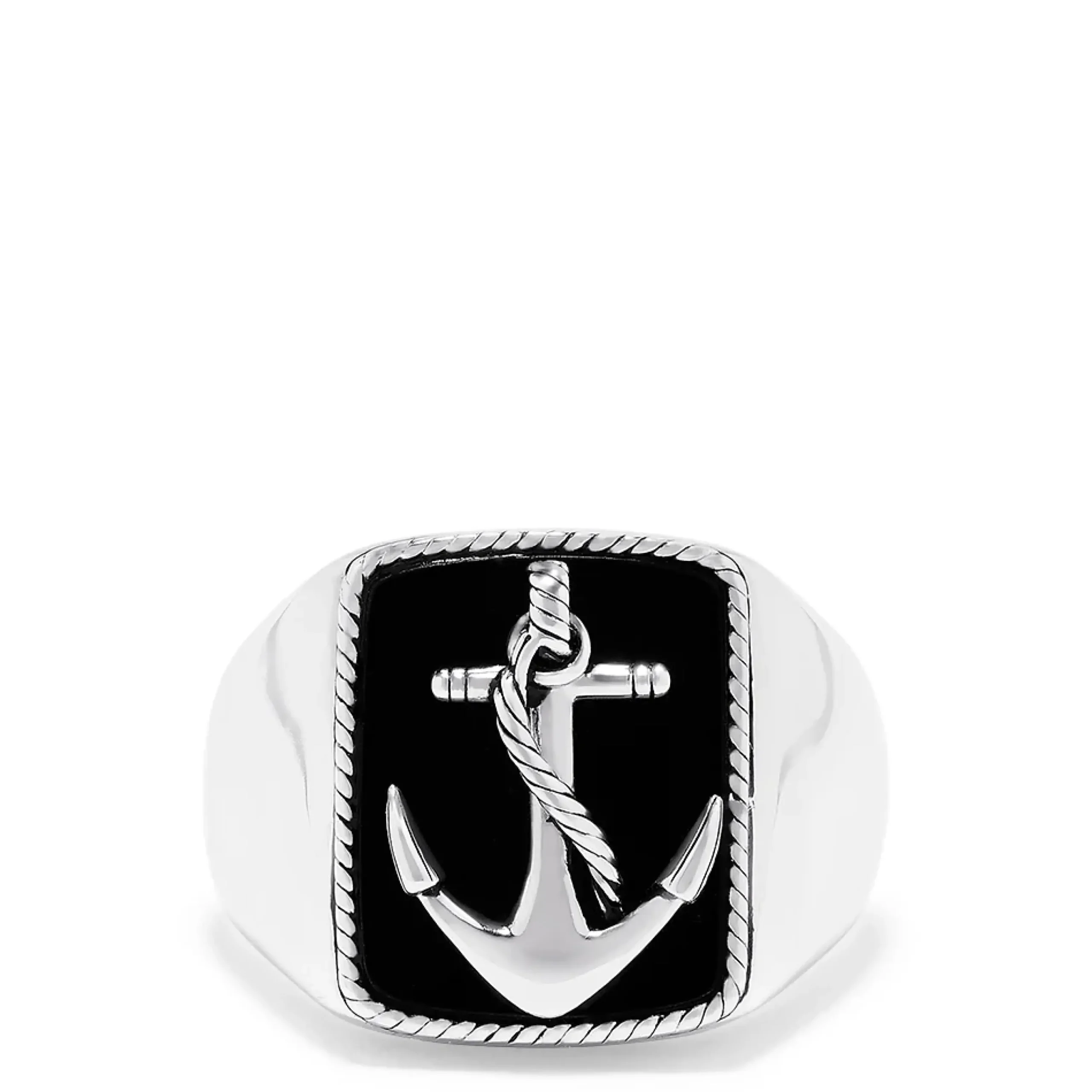 Effy Men’s Sterling Silver Onyx Anchor Ring, 6.00 TCW