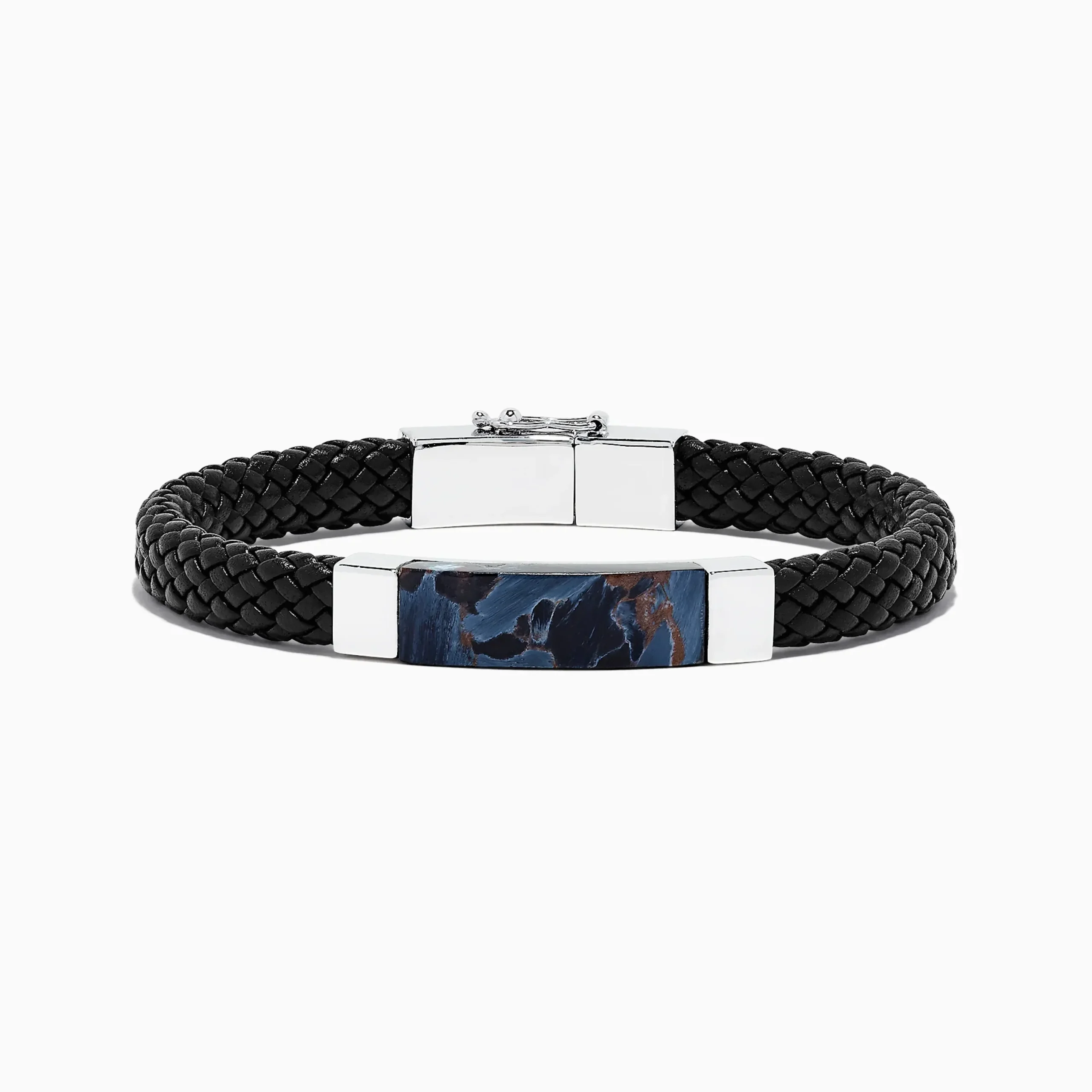Effy Men’s Sterling Silver Pietersite Woven Leather Bracelet, 12.50 TCW