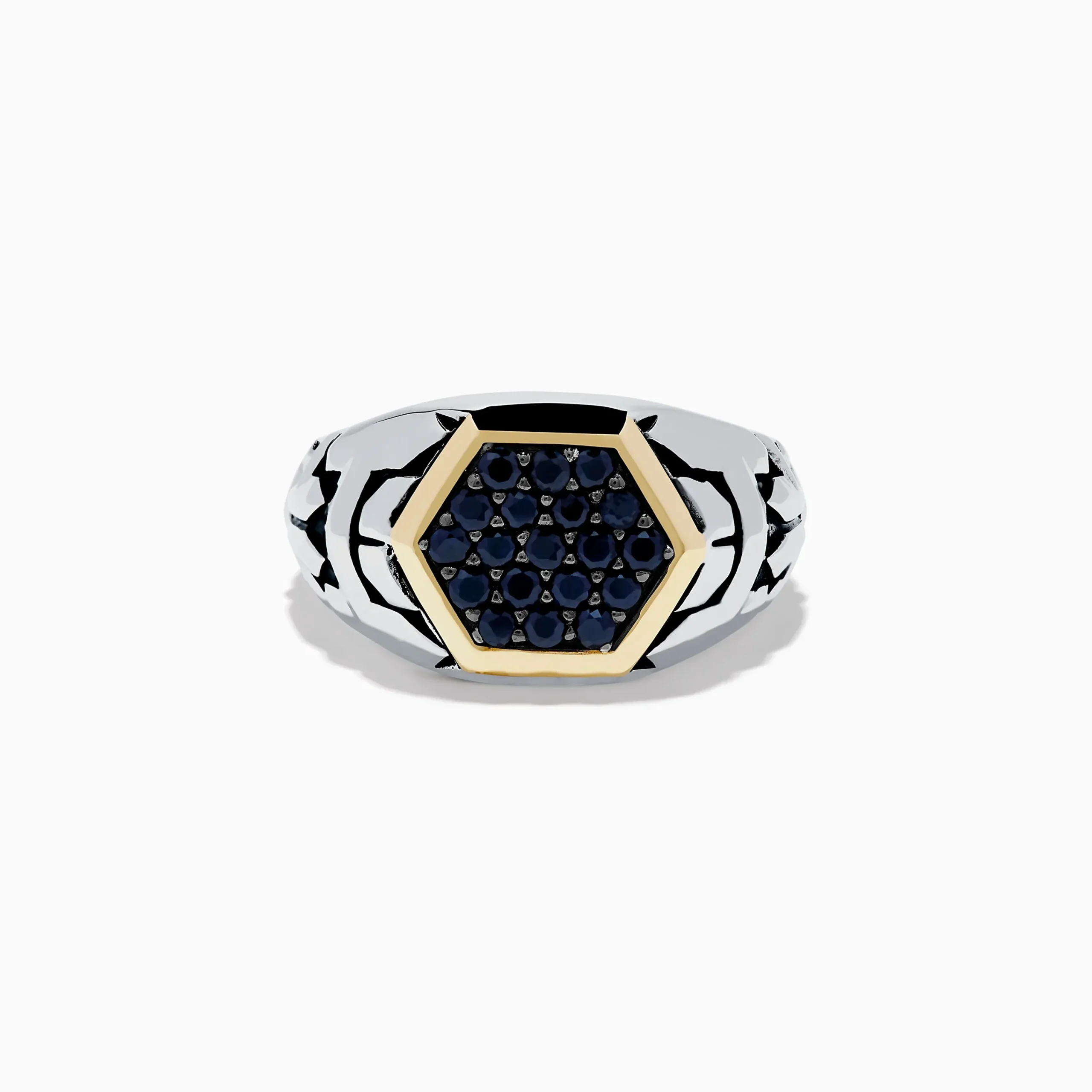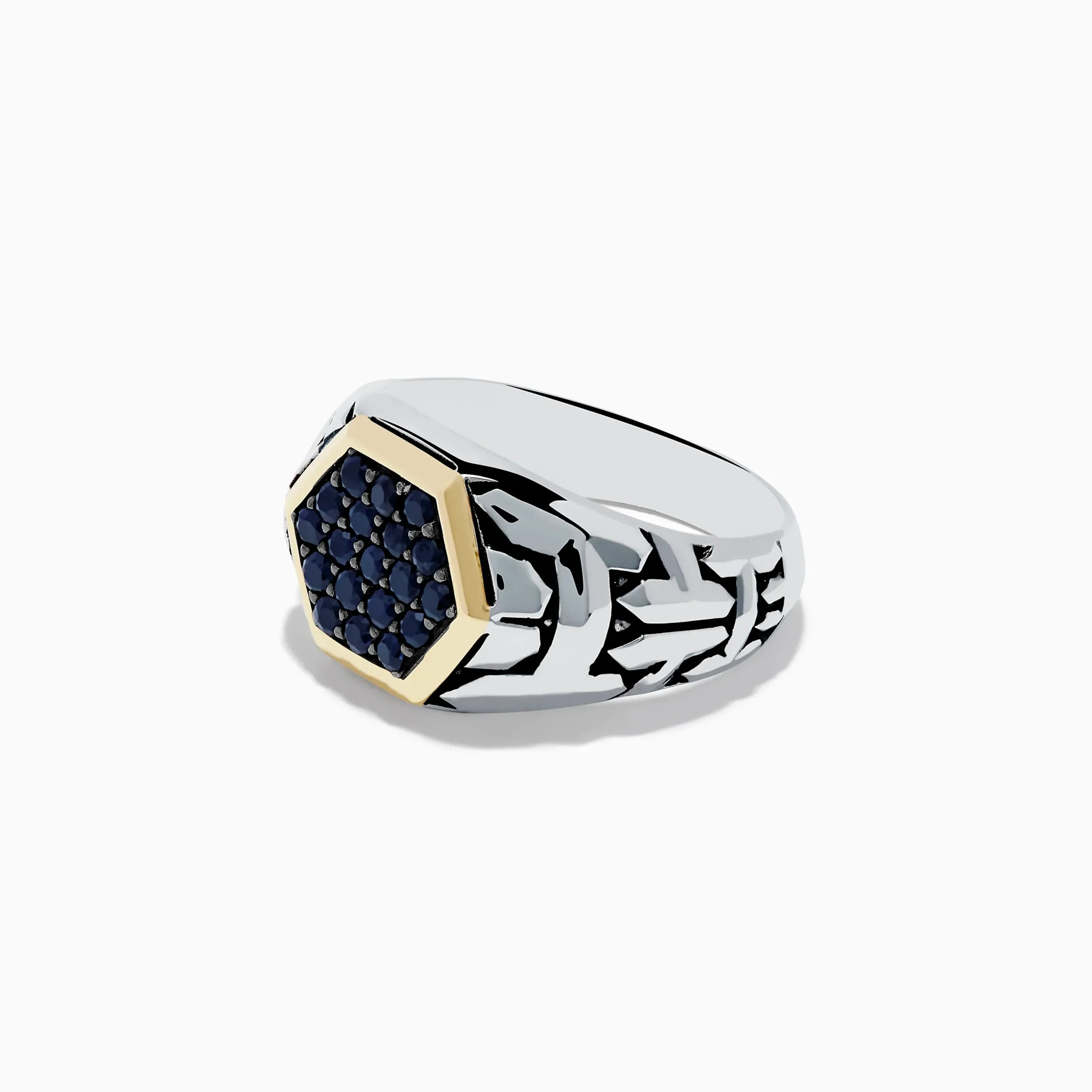 Effy Men’s Sterling Silver & 18K Yellow Gold Black Sapphire Ring, 0.85 TCW