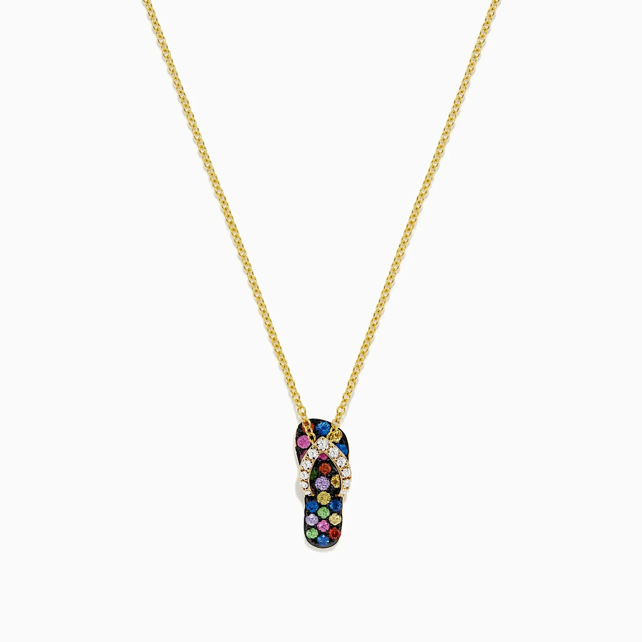 Effy 14K Gold Multi Sapphire and Diamond Flip Flop Pendant, 0.53 TCW