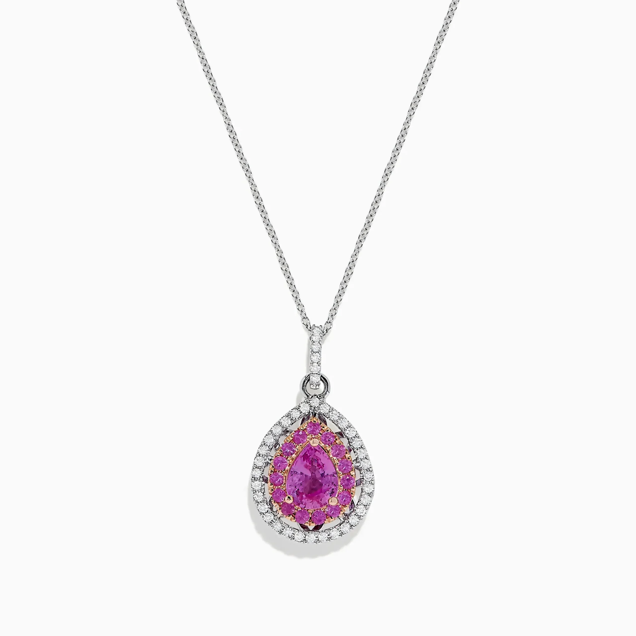 Effy 14K Two Tone Gold Pink Sapphire and Diamond Pendant, 1.74 TCW