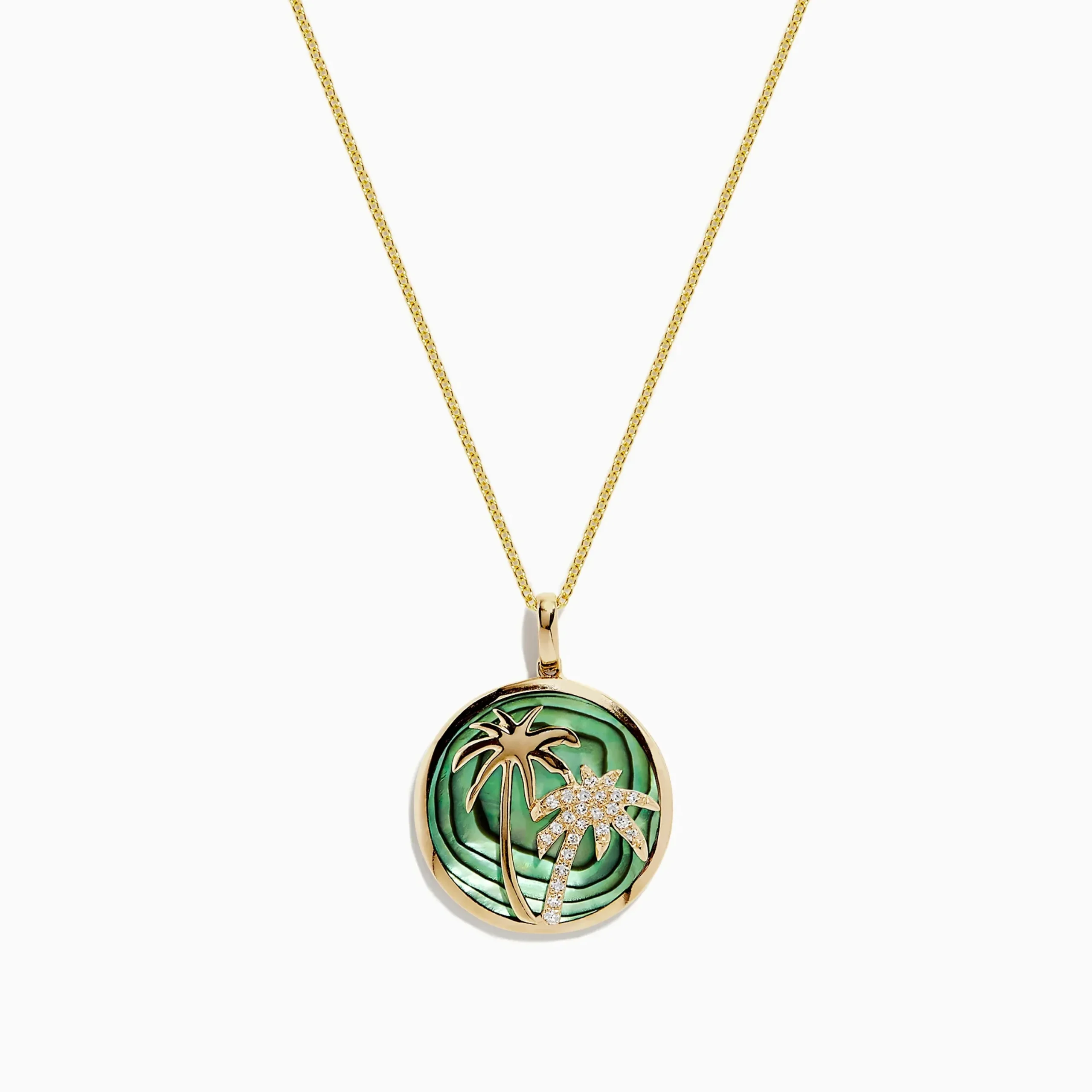 Effy 14K Yellow Gold Abalone and Diamond Palm Tree Pendant, 4.52 TCW