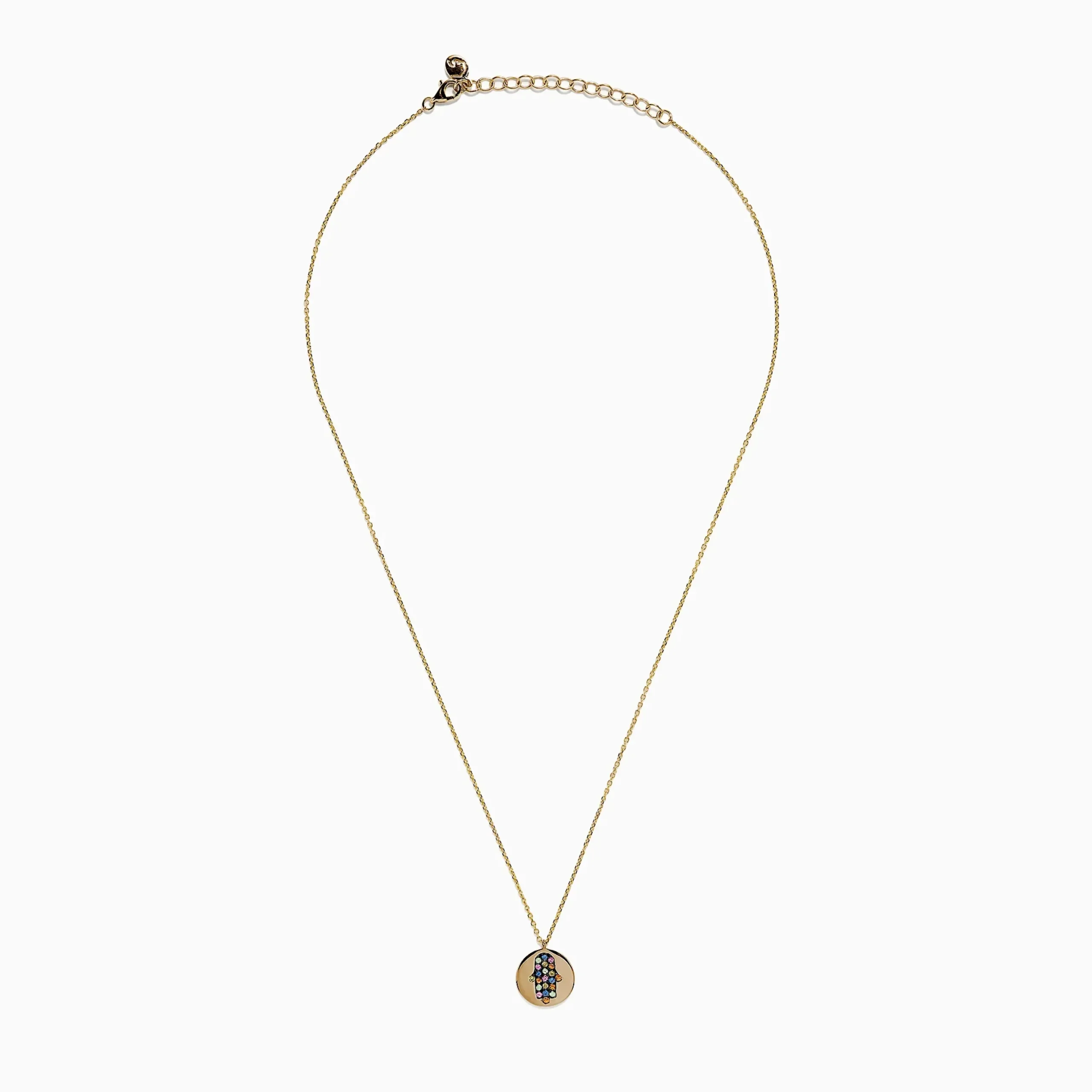 Effy 14K Yellow Gold Multi Sapphire and Diamond Hamsa Necklace, 0.33 TCW