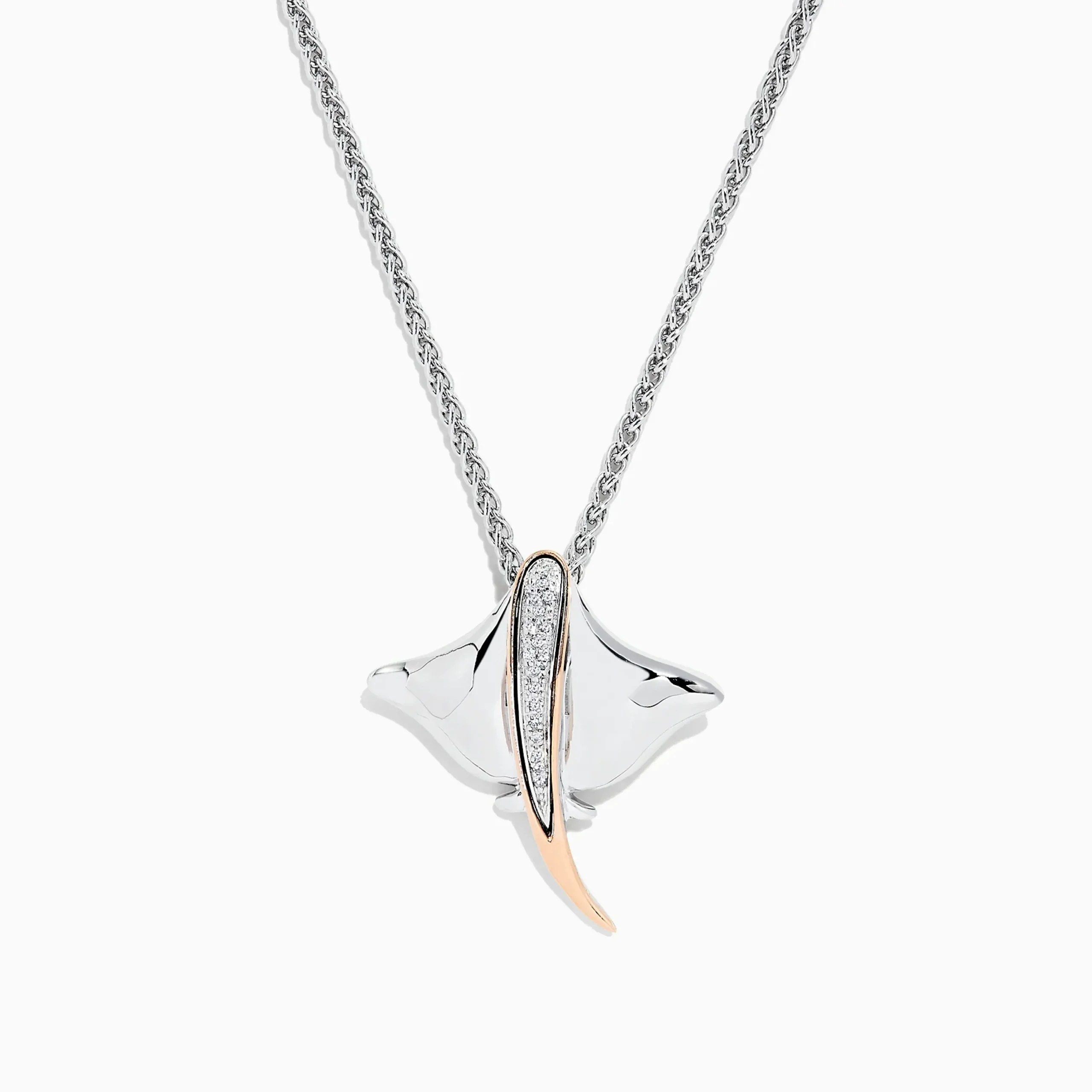 Effy 925 Sterling Silver & 14K Gold Diamond Stingray Pendant, 0.05 TCW