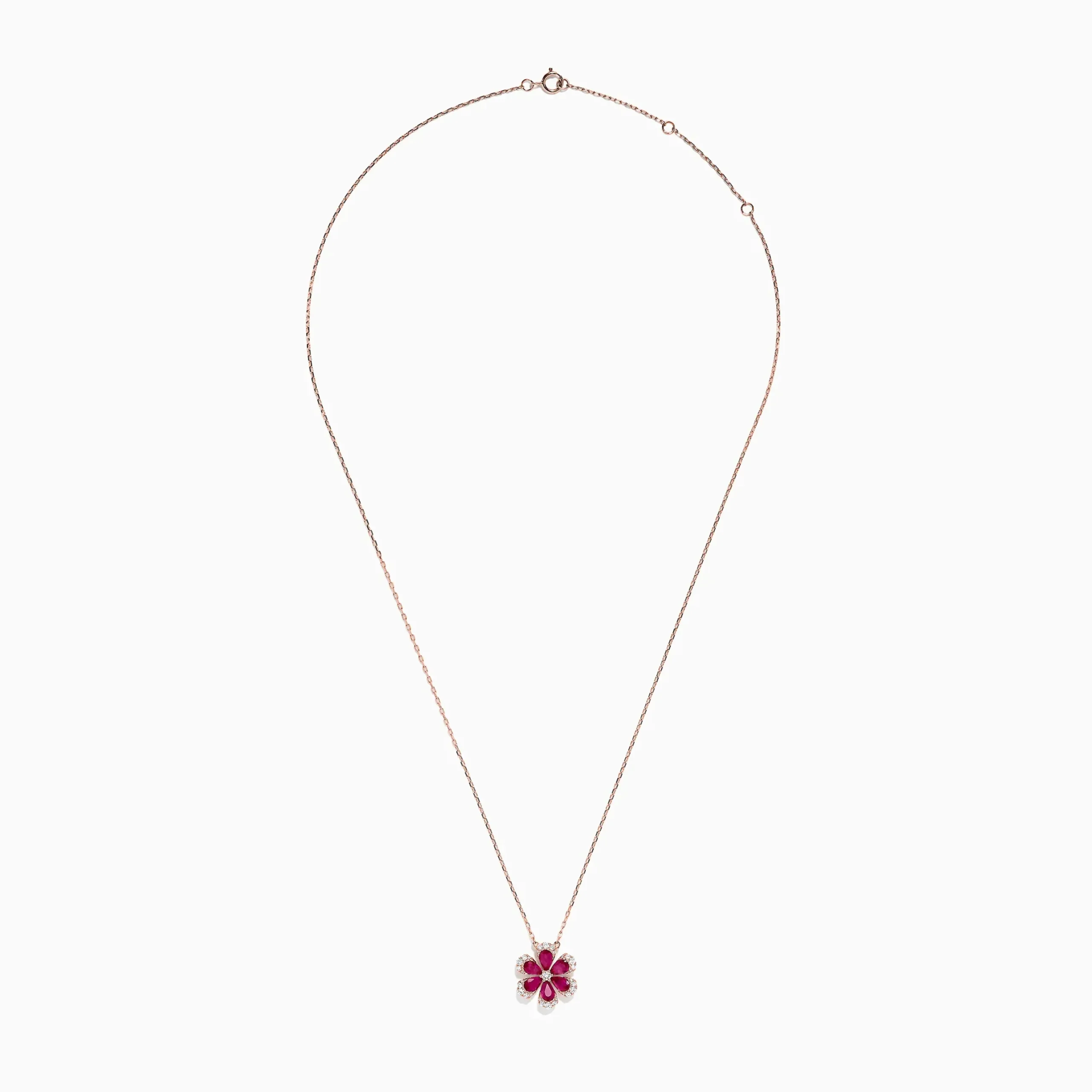 Effy Nature 14K Rose Gold Ruby and Diamond Flower Necklace, 1.91 TCW
