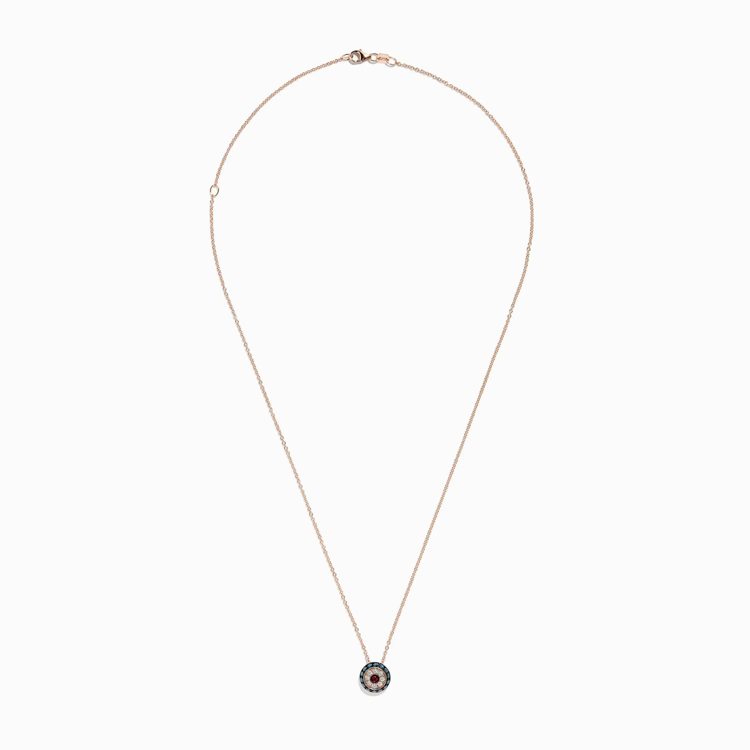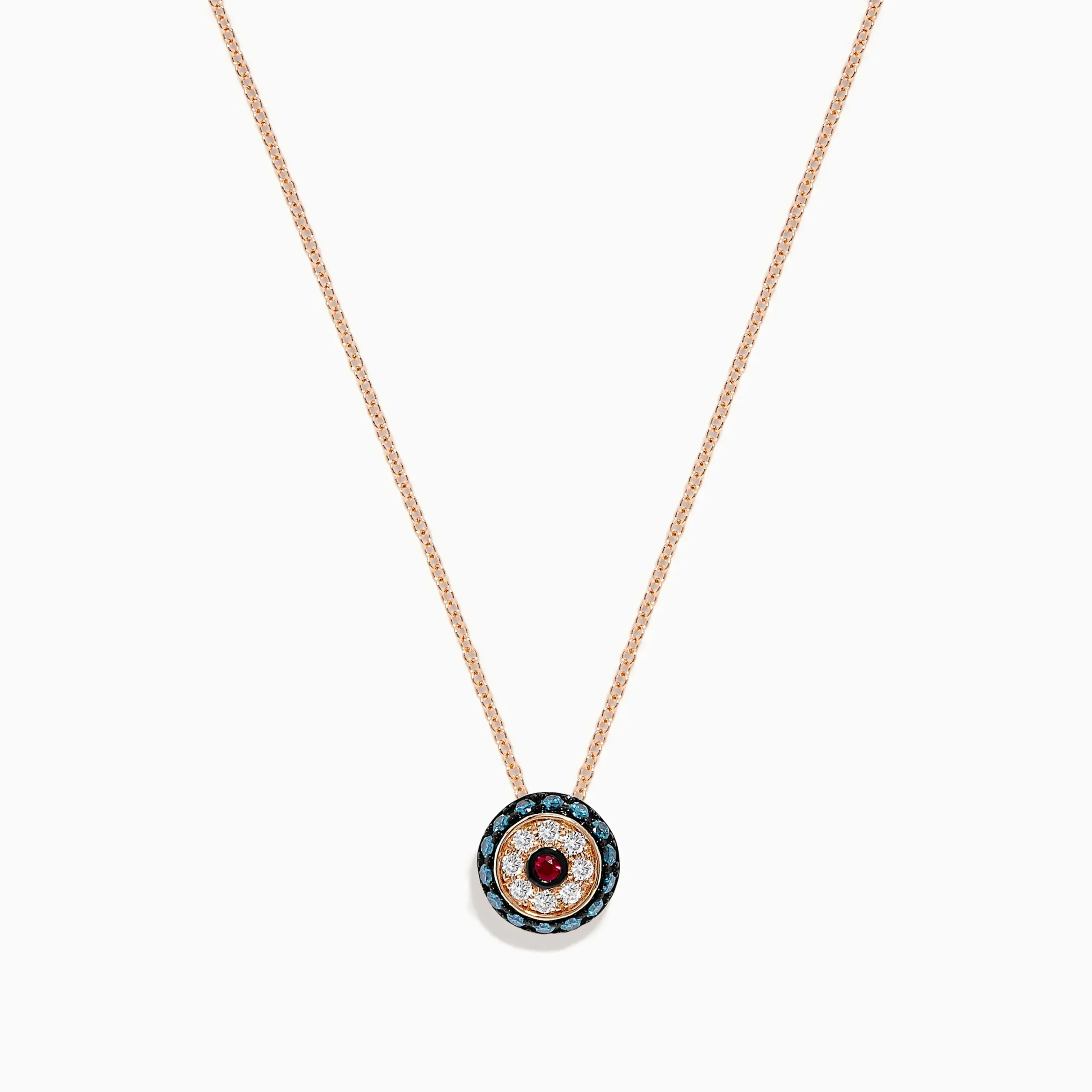 Effy Novelty 14K Gold Ruby, Blue & White Diamond Evil Eye Pendant,0.40 TCW