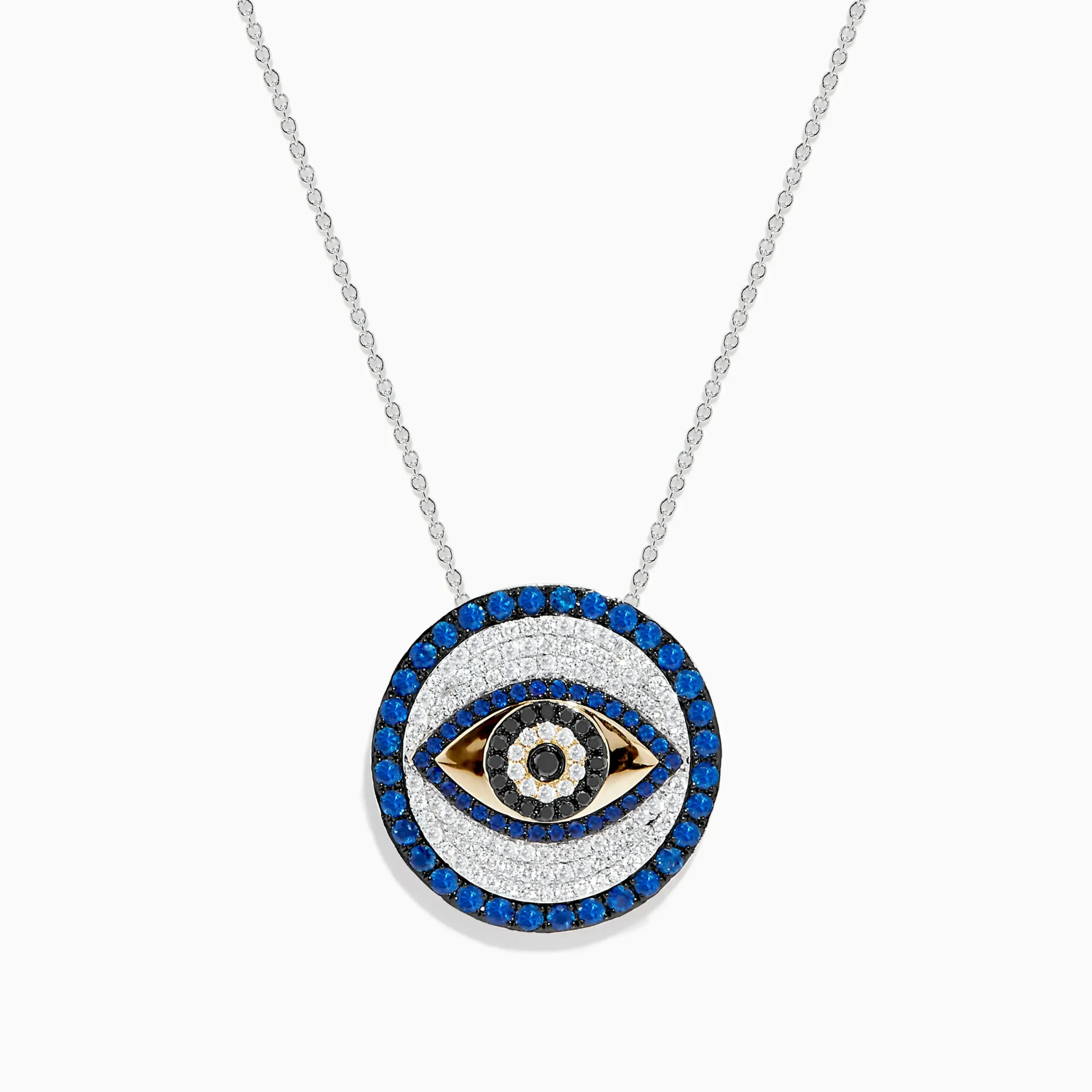 Effy Novelty 14K Two Tone Gold Sapphire and Diamond Evil Eye Pendant