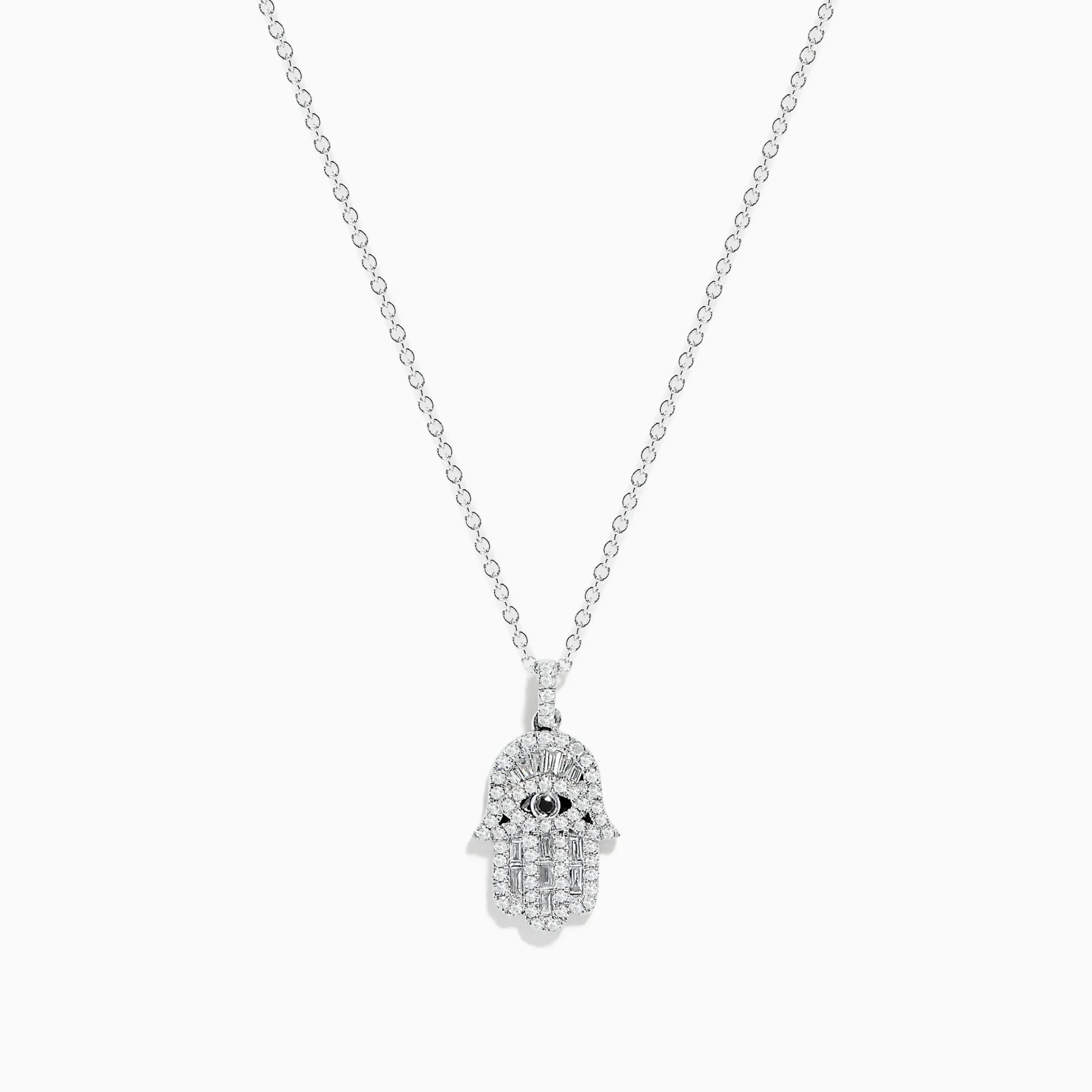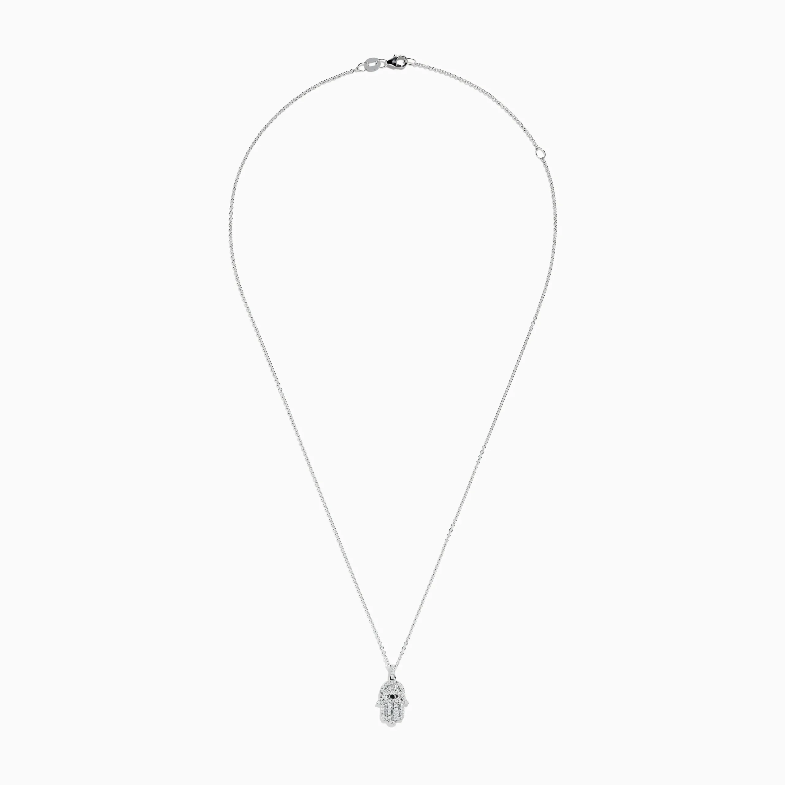 Effy Novelty 14K White Gold Black and White Diamond Hamsa Pendant
