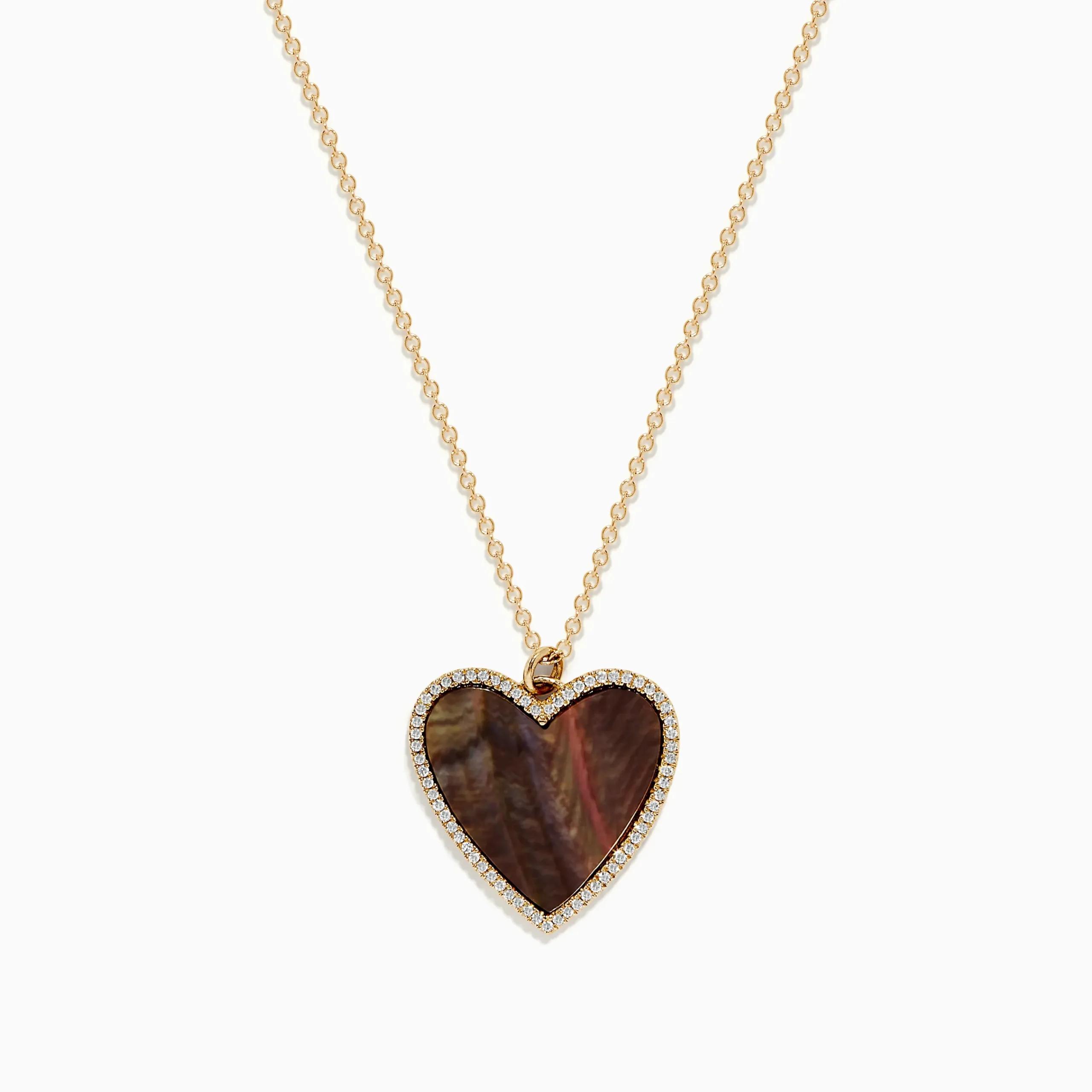 Effy Novelty 14K Yellow Gold Mother of Pearl and Diamond Heart Pendant