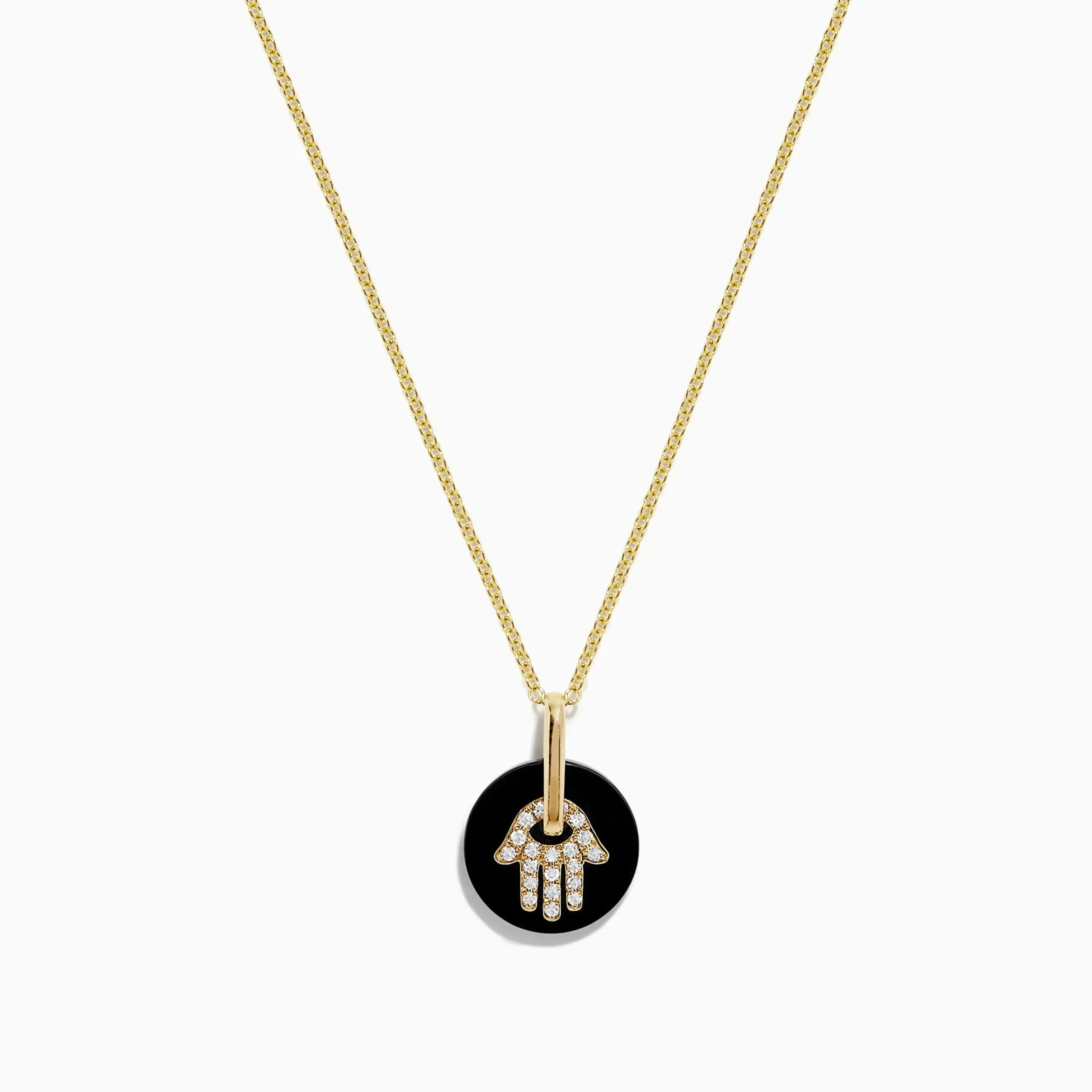 Effy Novelty 14K Yellow Gold Onyx and Diamond Hamsa Pendant, 2.98 TCW