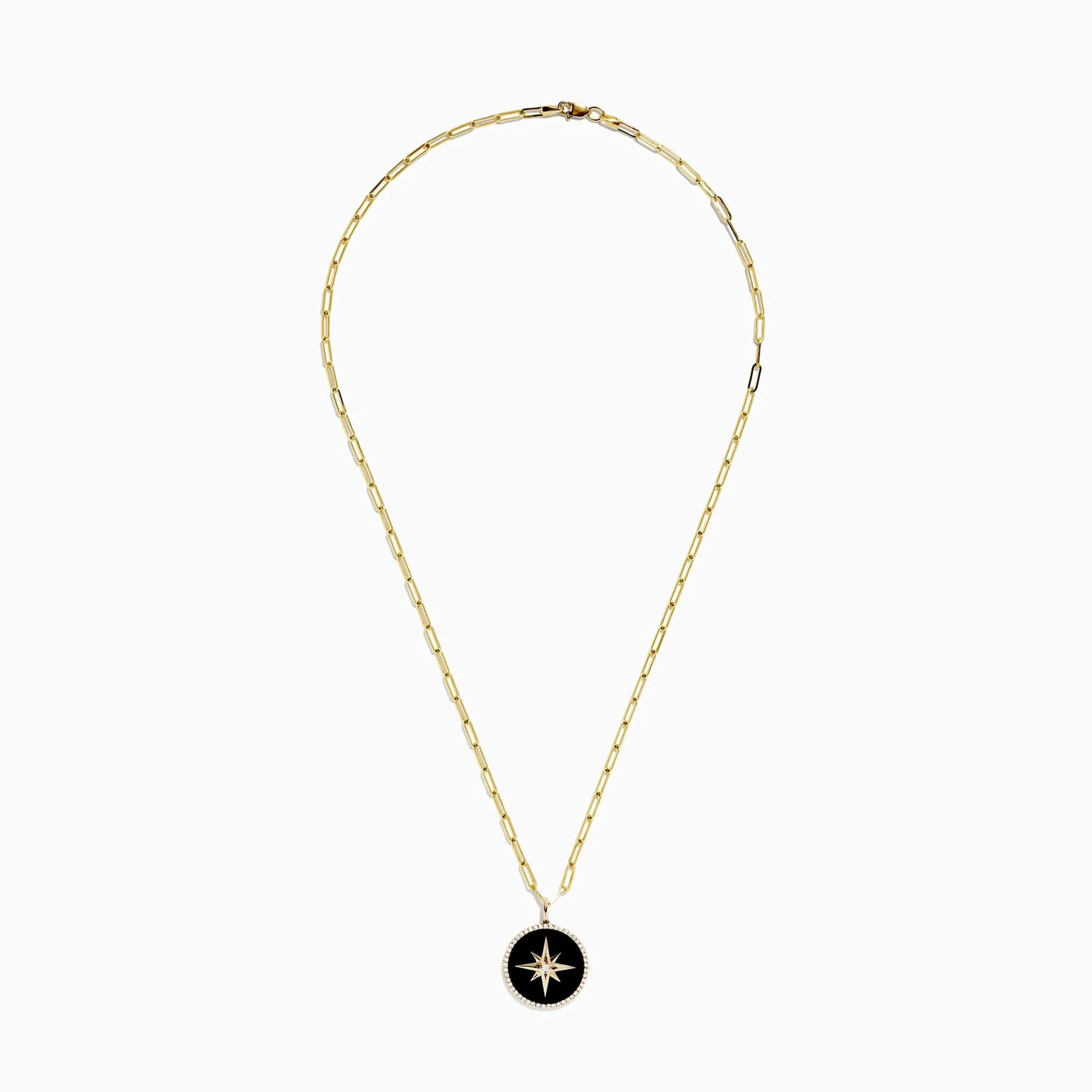 Effy Novelty 14K Yellow Gold Onyx and Diamond Star Coin Pendant, 4.49 TCW