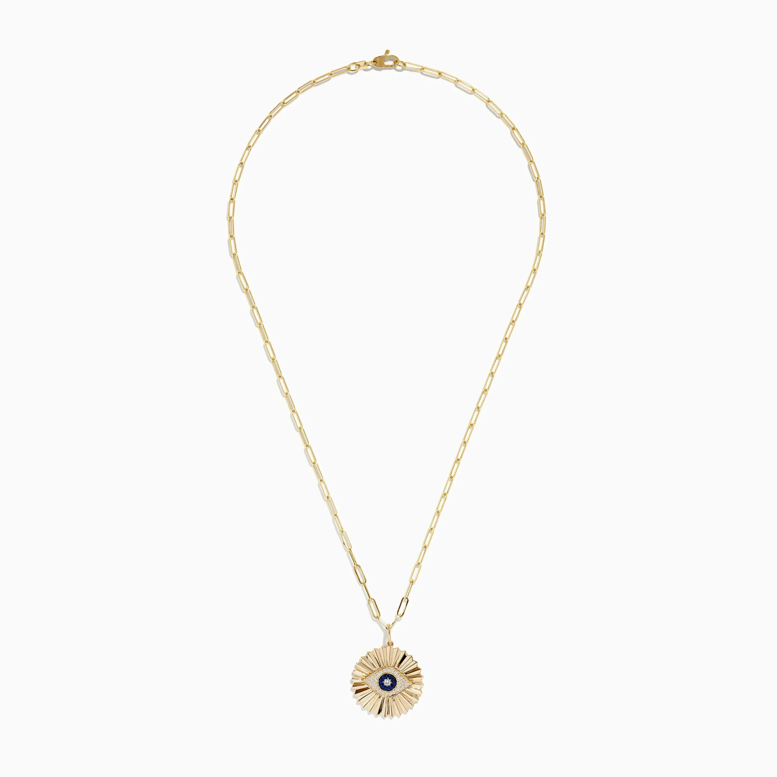 Effy Novelty 14K Yellow Gold Sapphire and Diamond Evil Eye Disk Pendant