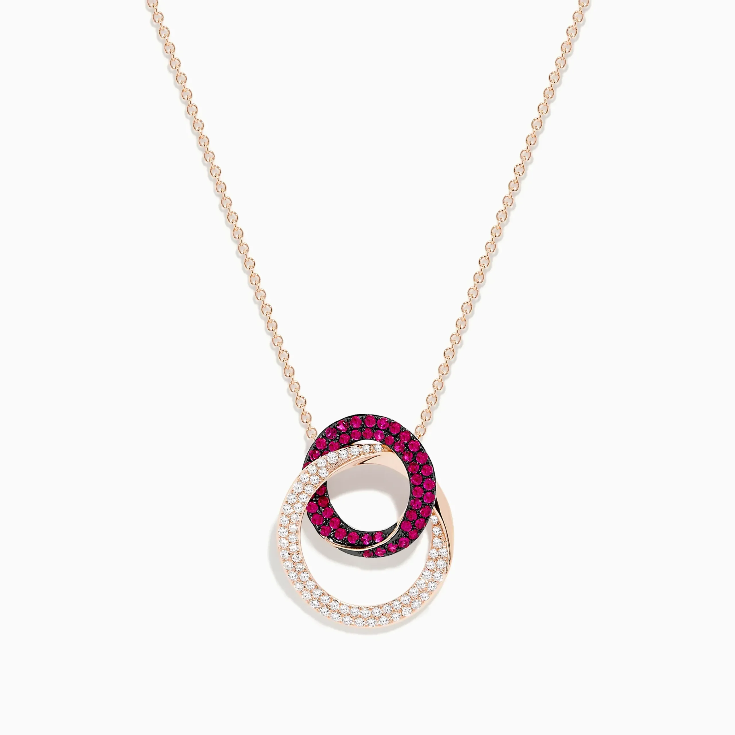 Effy Ruby Royale 14K Rose Gold Ruby and Diamond Intertwined Circles Pendant