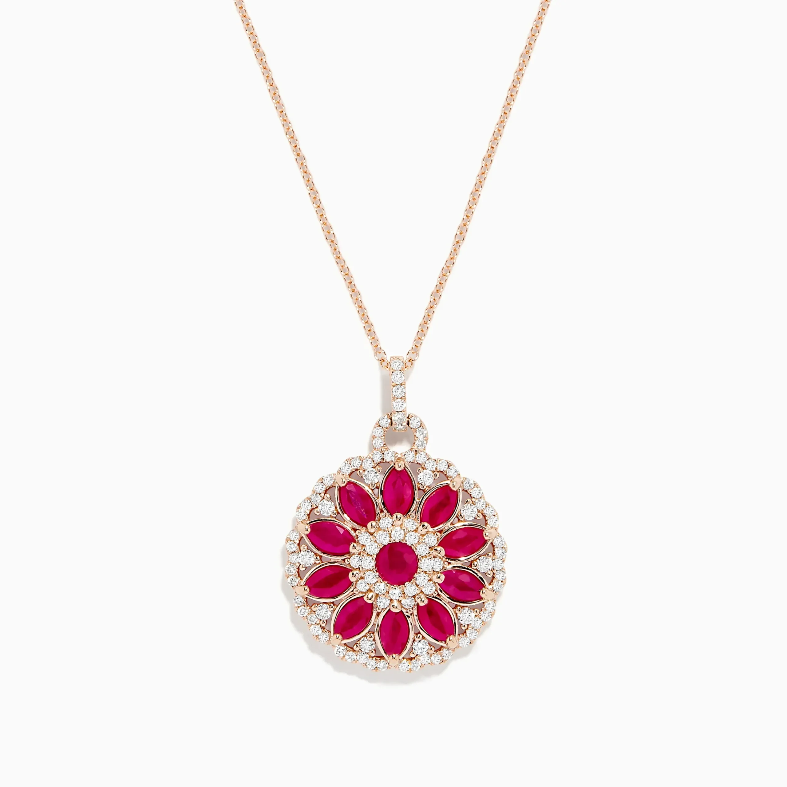 Effy Ruby Royale 14K Rose Gold Ruby and Diamond Mandala Pendant