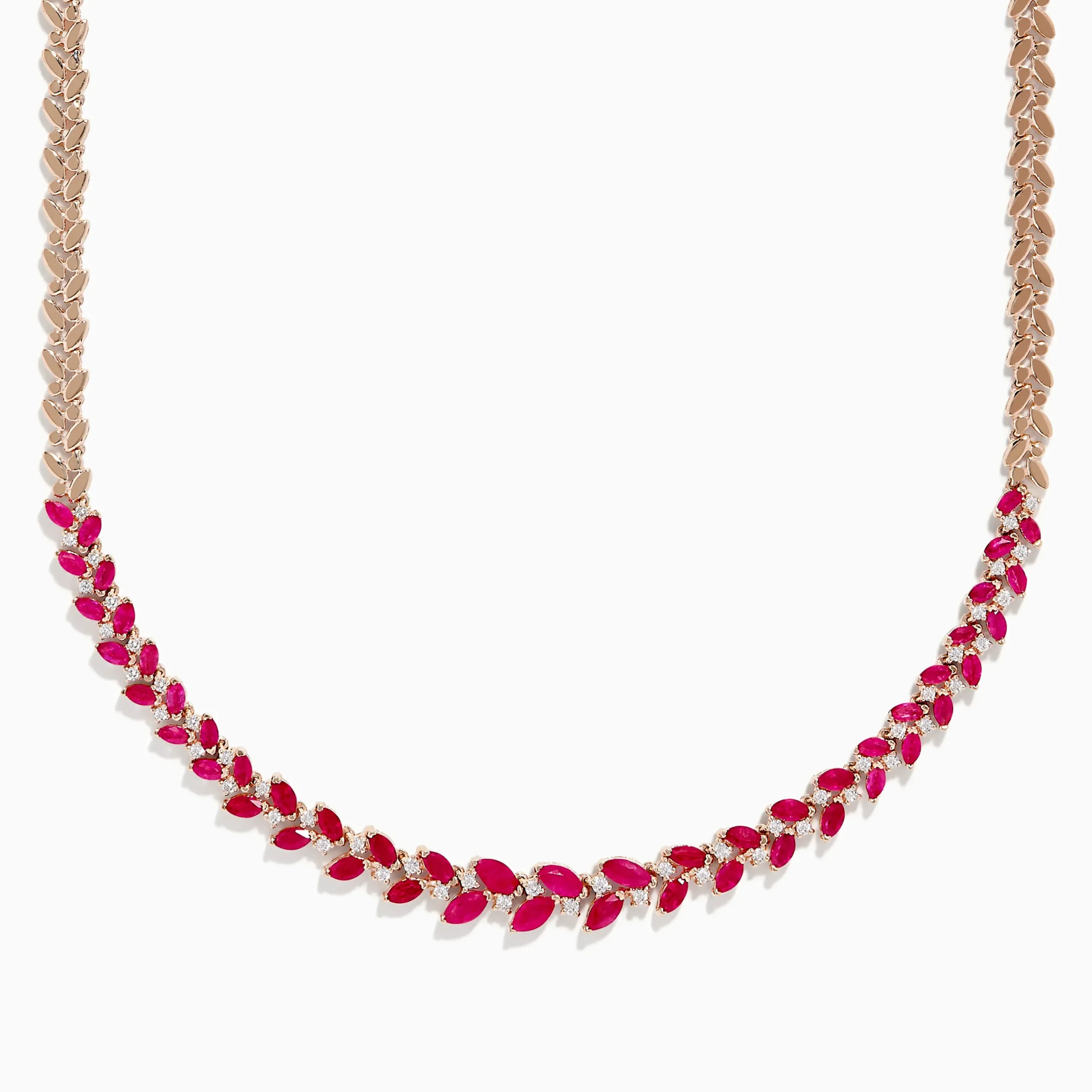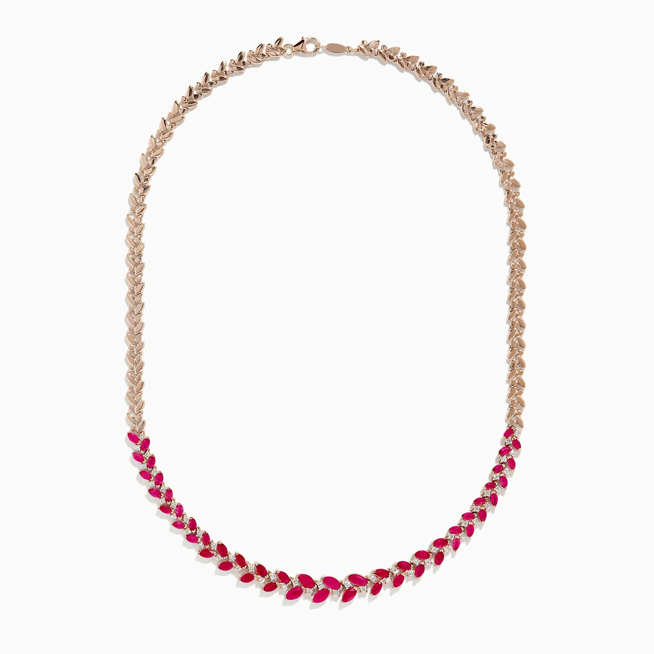 Effy Ruby Royale 14K Yellow Gold Ruby and Diamond Leaf Necklace