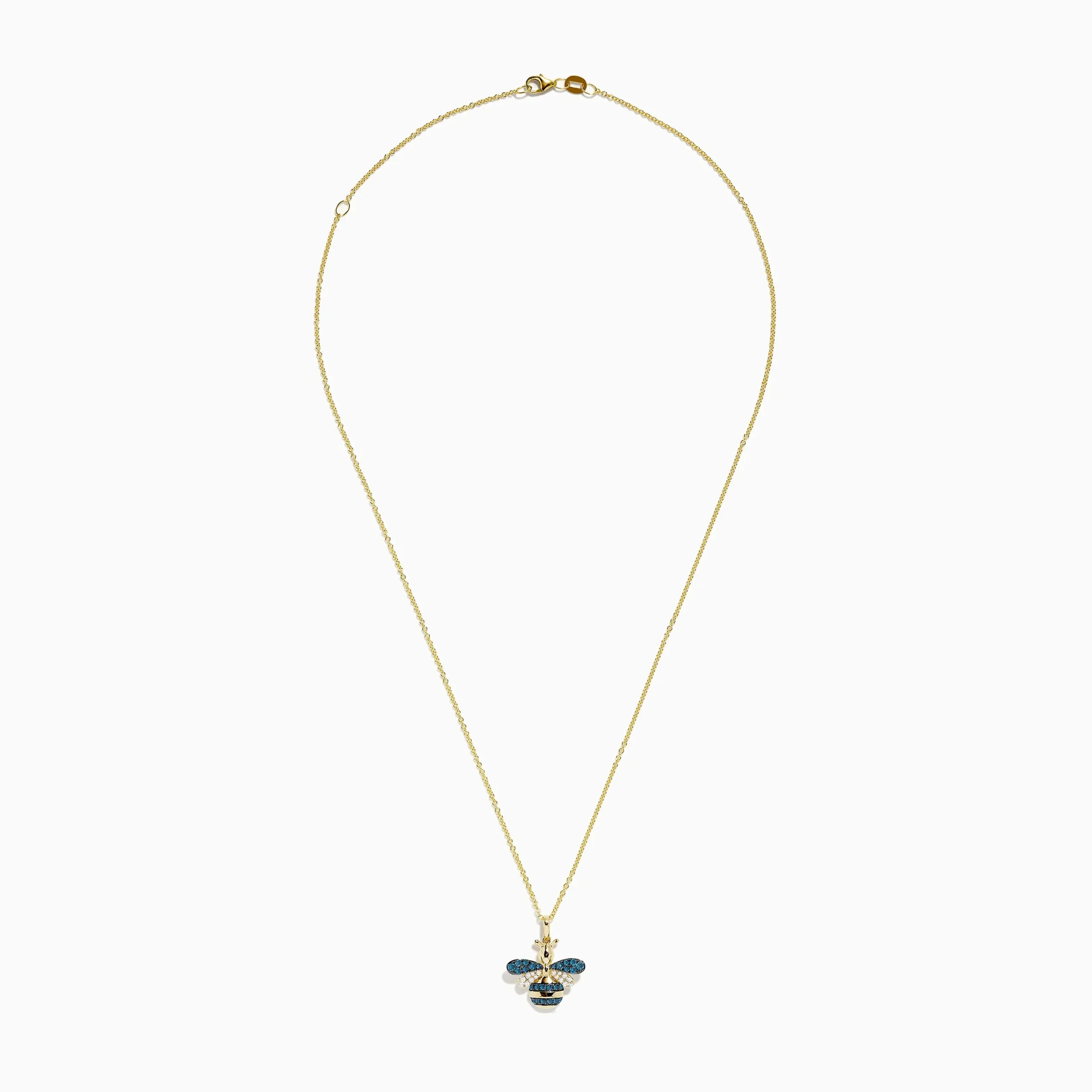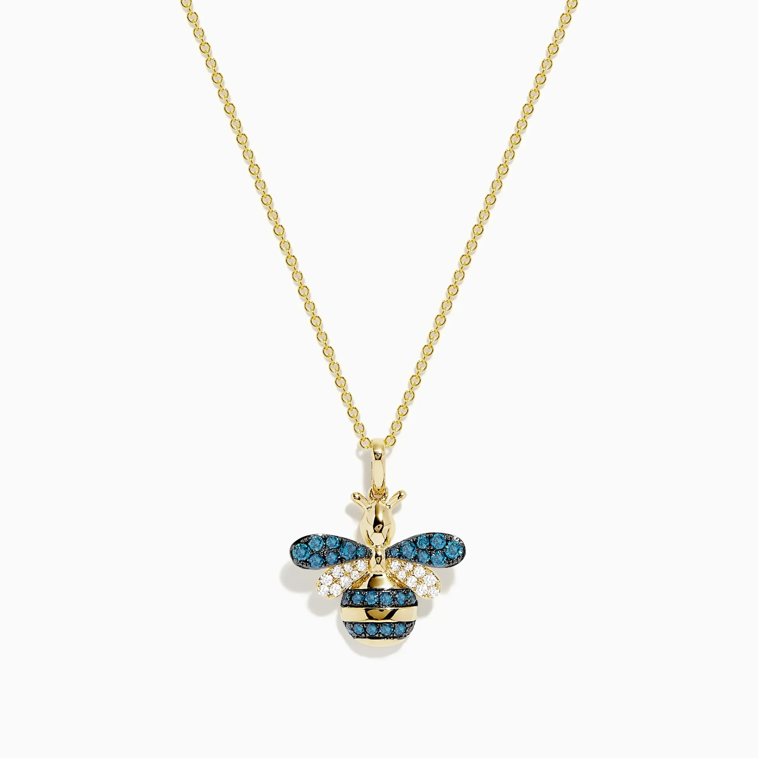 Effy Safari 14K Yellow Gold Blue and White Diamond Bee Pendant
